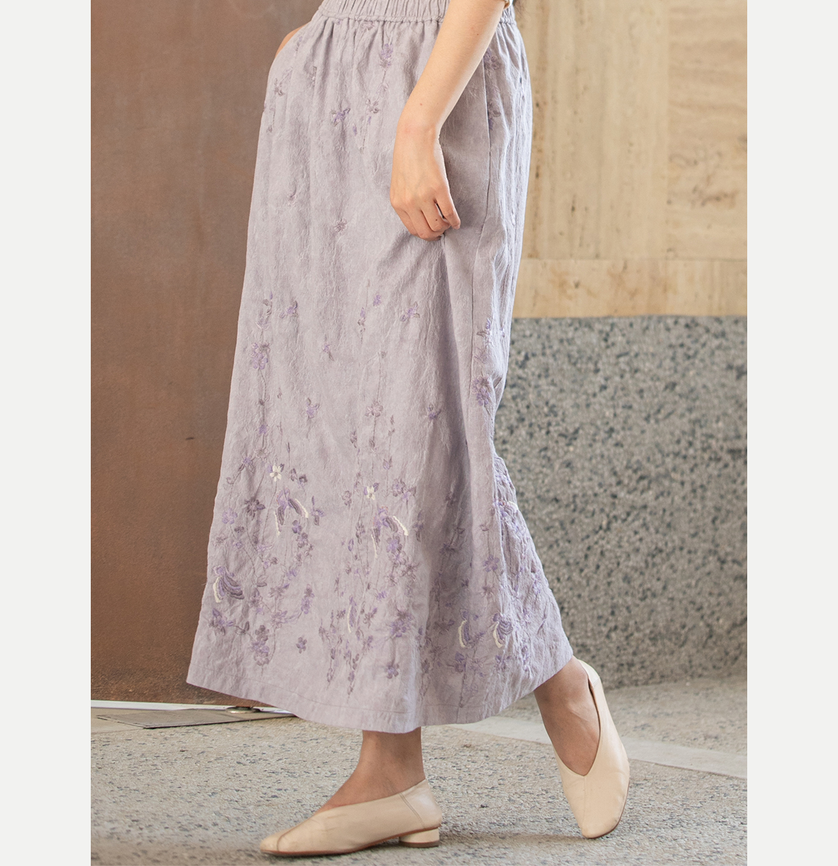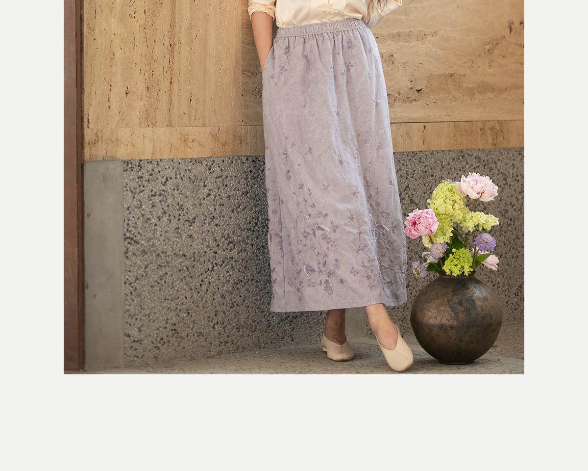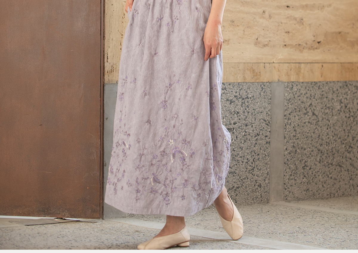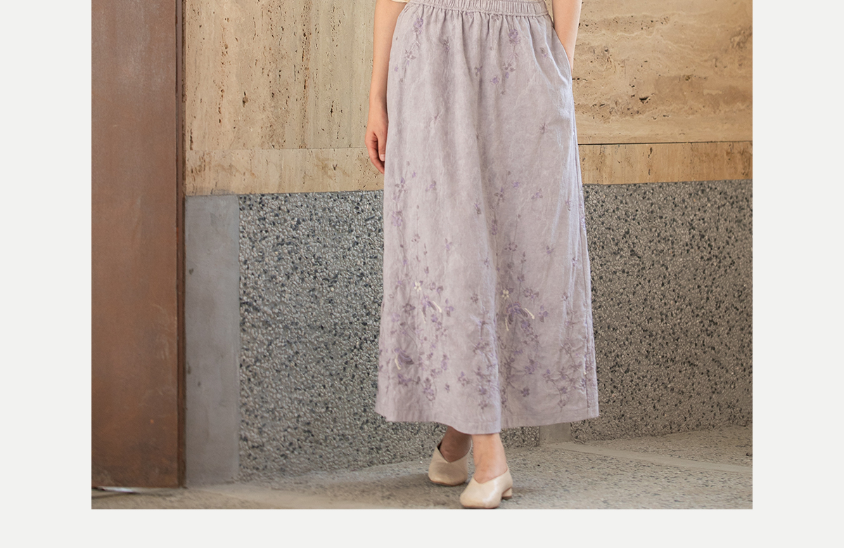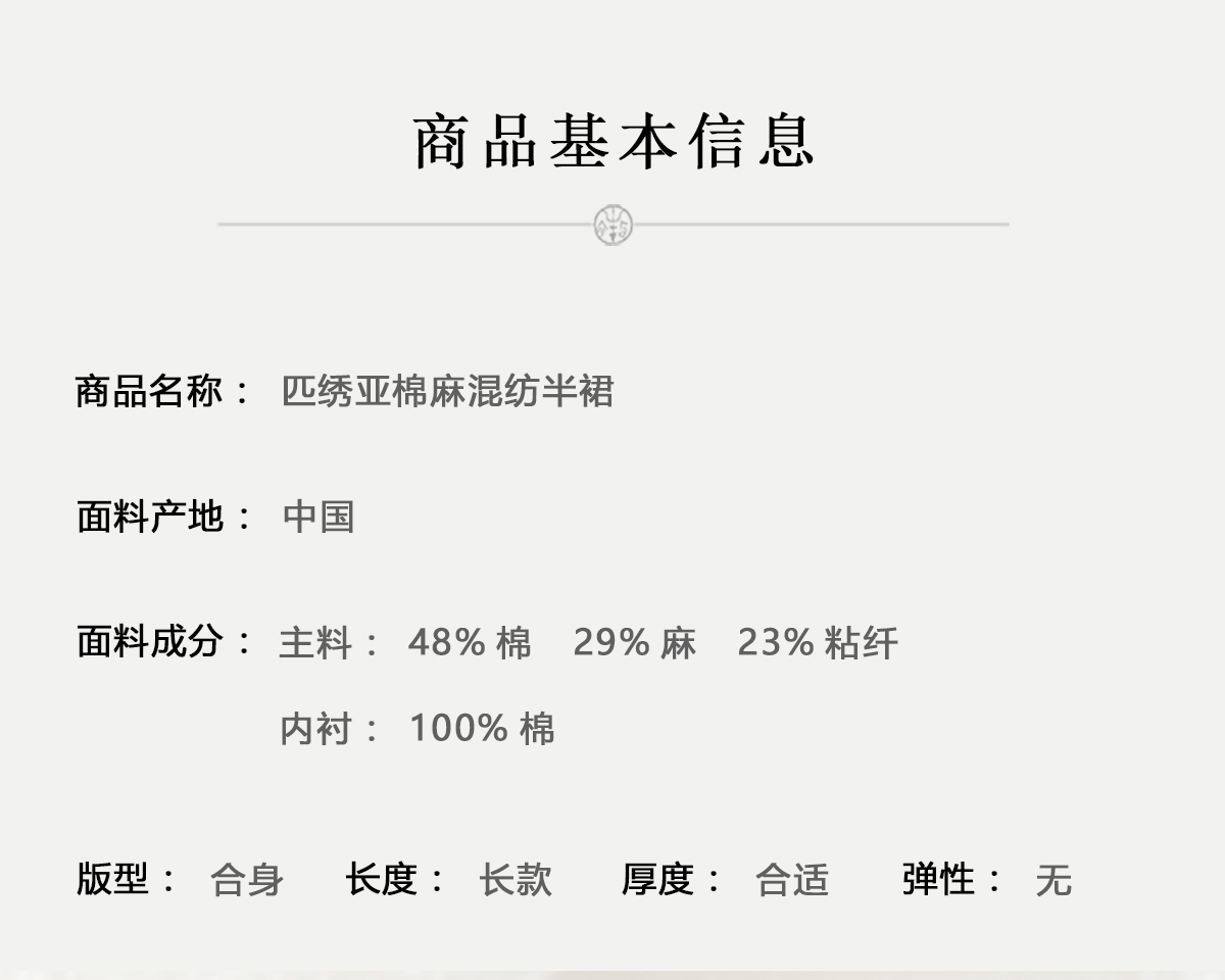 牧衣游原创 匹绣亚棉麻混纺半裙炒色素雅宽松a字半身裙 瑶花慢