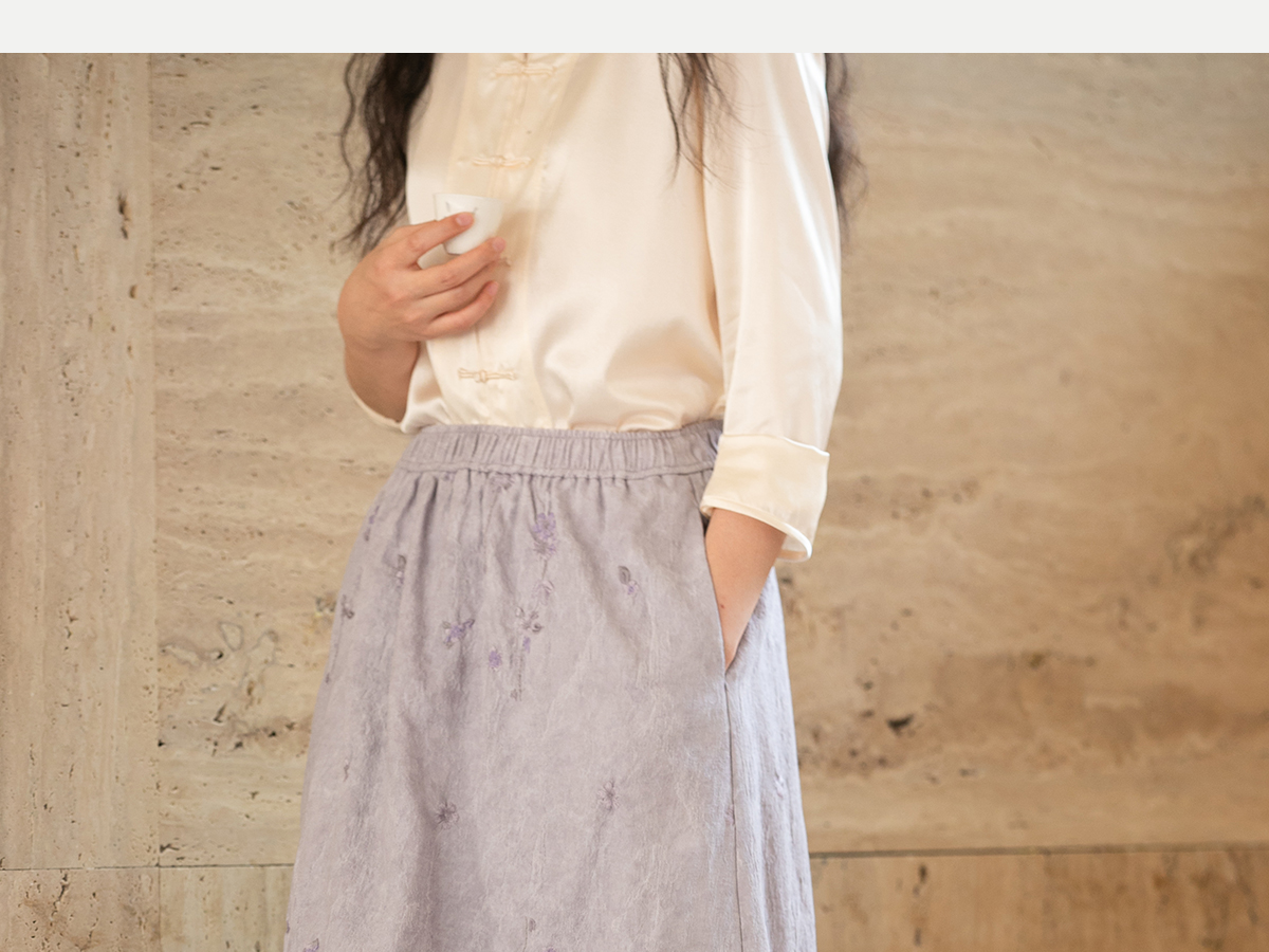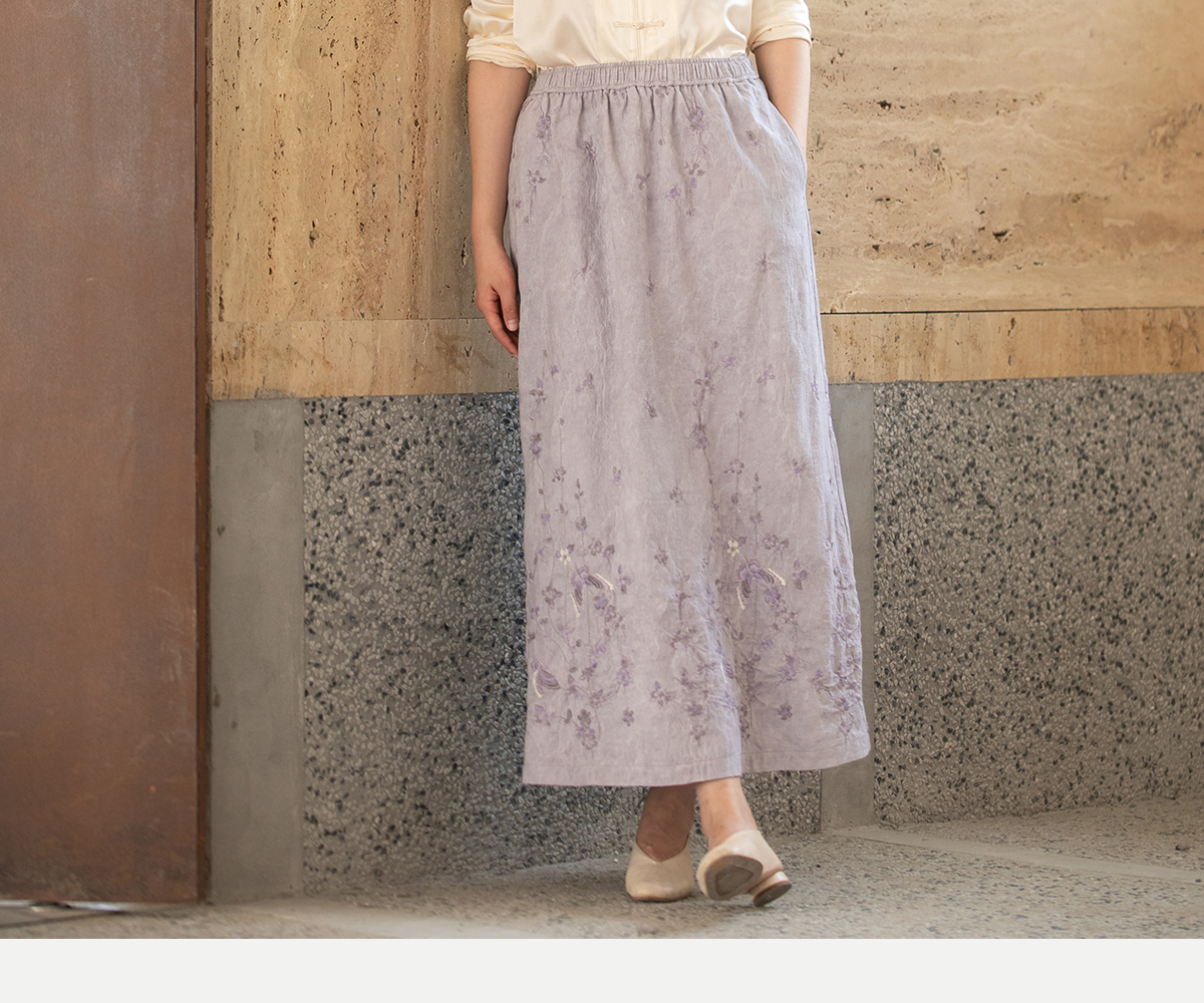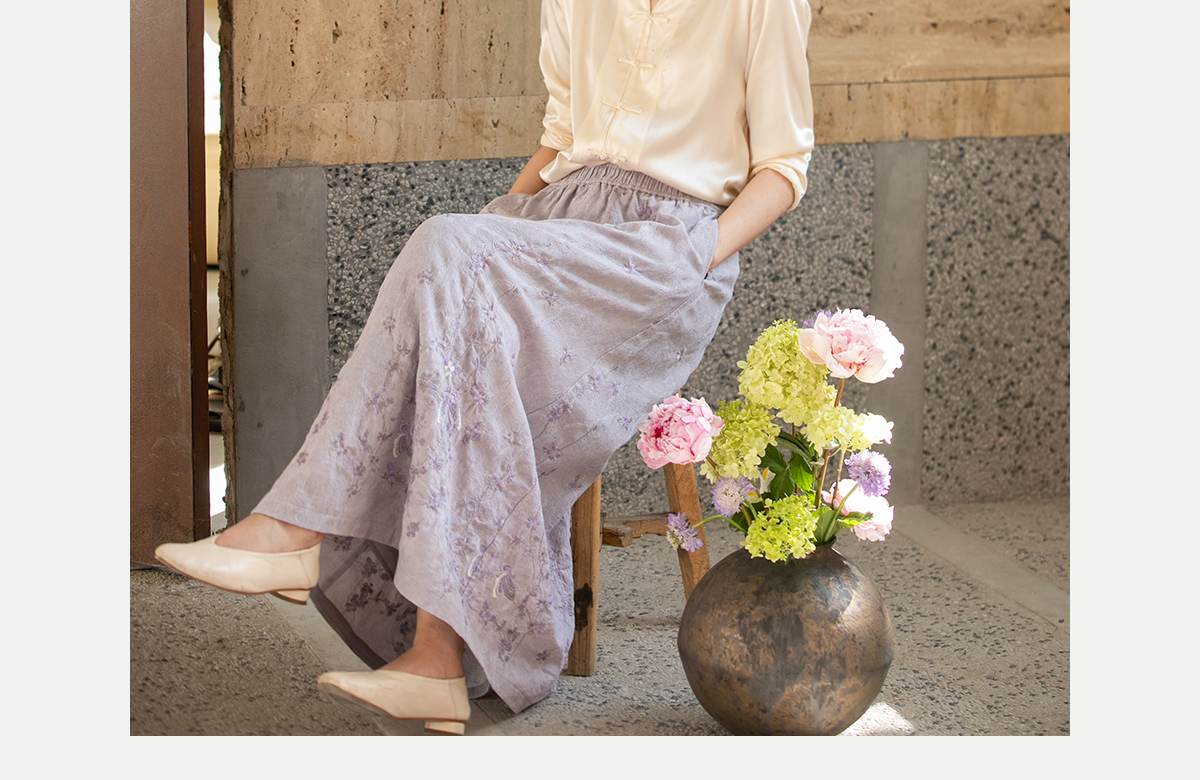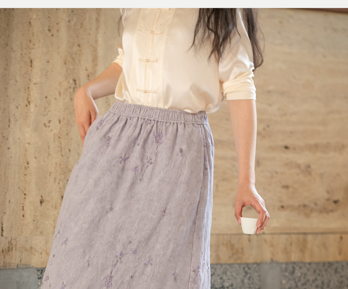 牧衣游原创 匹绣亚棉麻混纺半裙炒色素雅宽松a字半身裙 瑶花慢