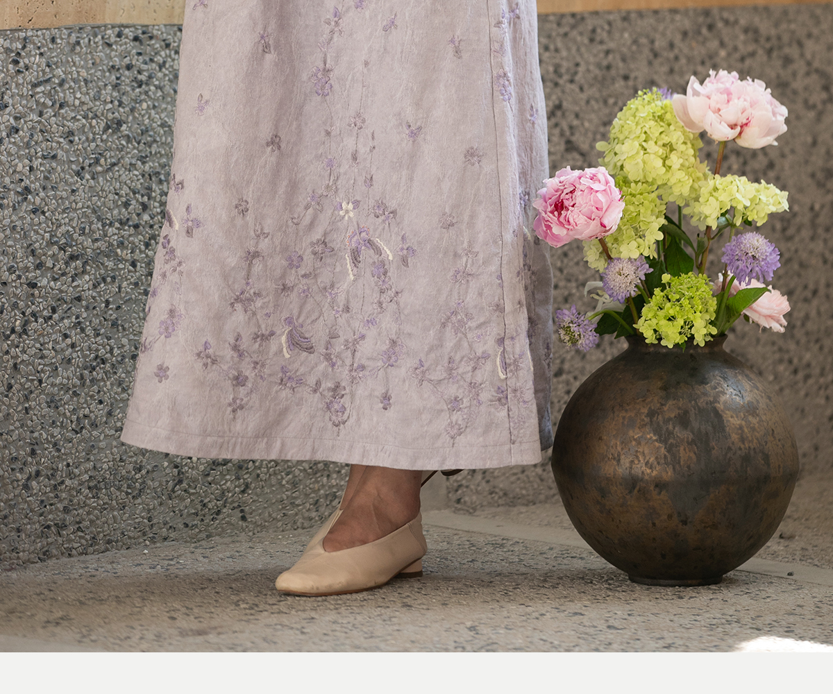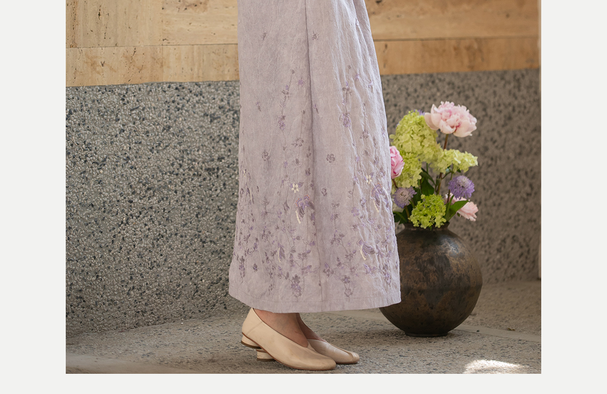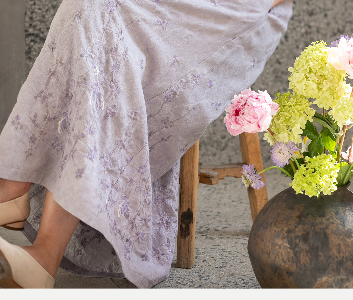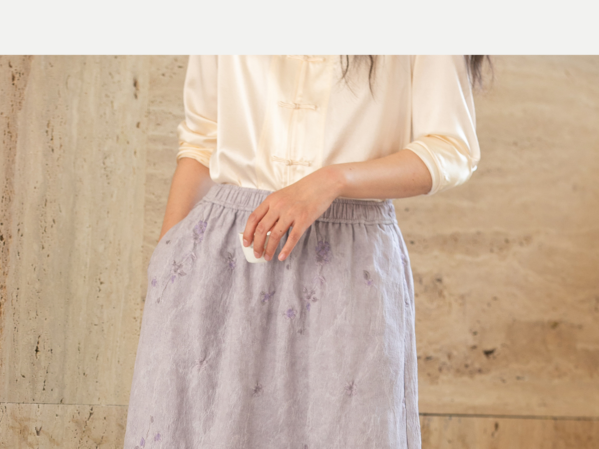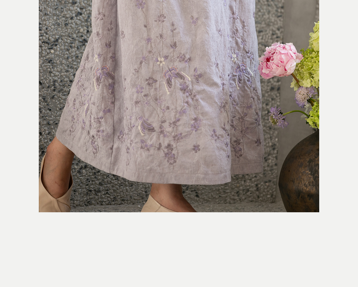 牧衣游原创 匹绣亚棉麻混纺半裙炒色素雅宽松a字半身裙 瑶花慢