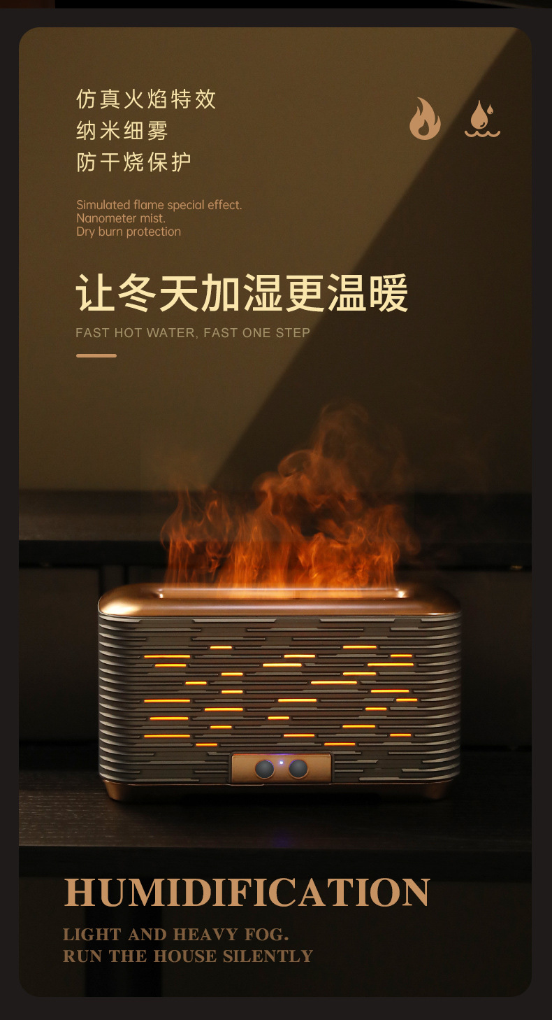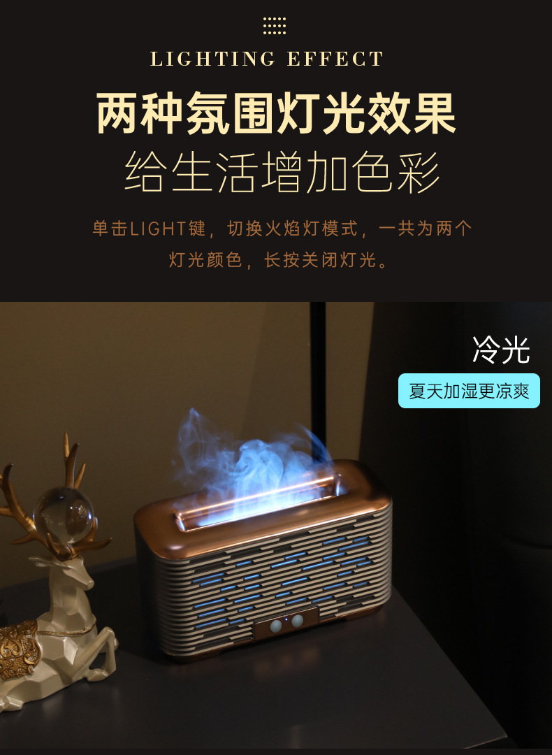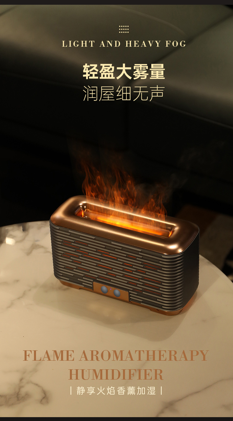 仿真火焰香薰机家用迷你智能精油桌面静音超声波3D火焰香薰加湿器