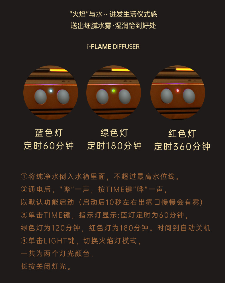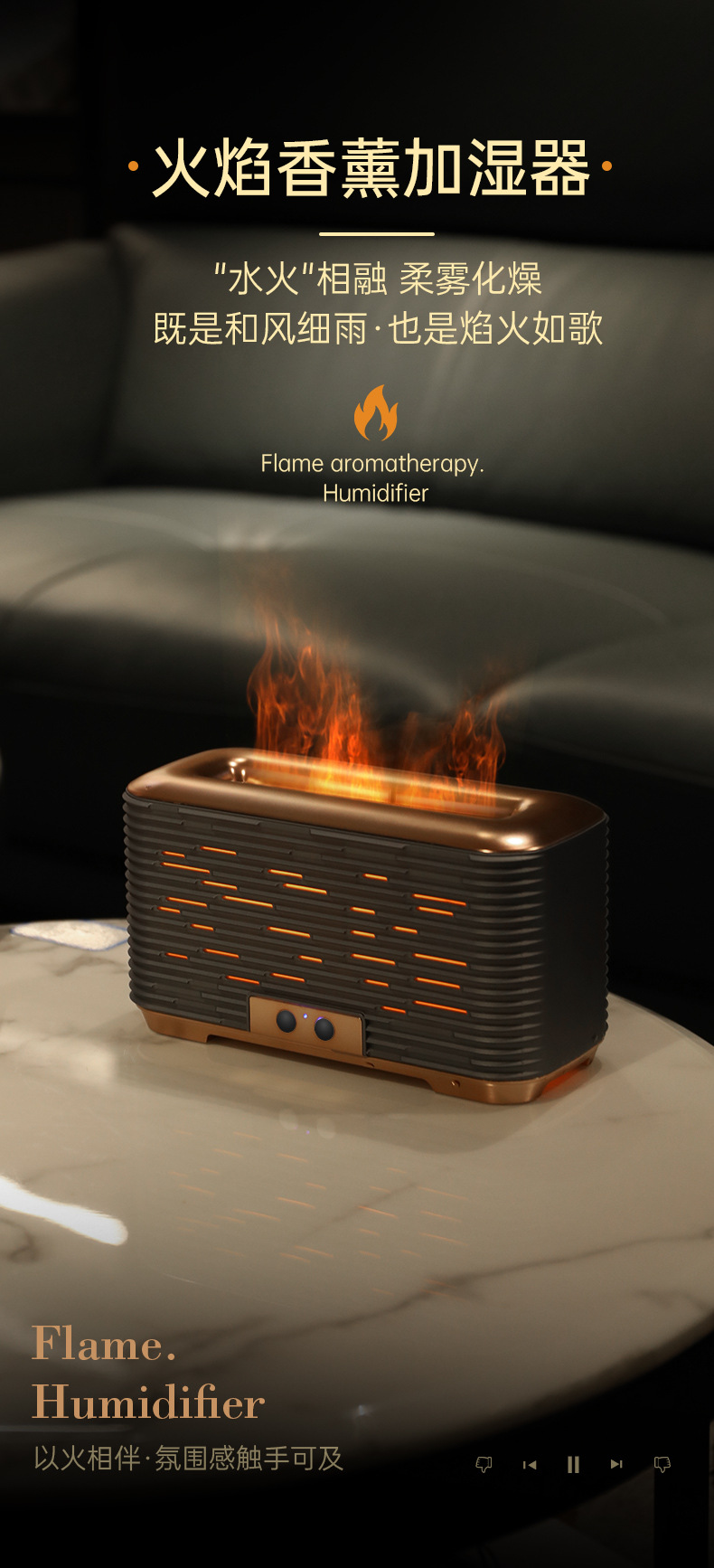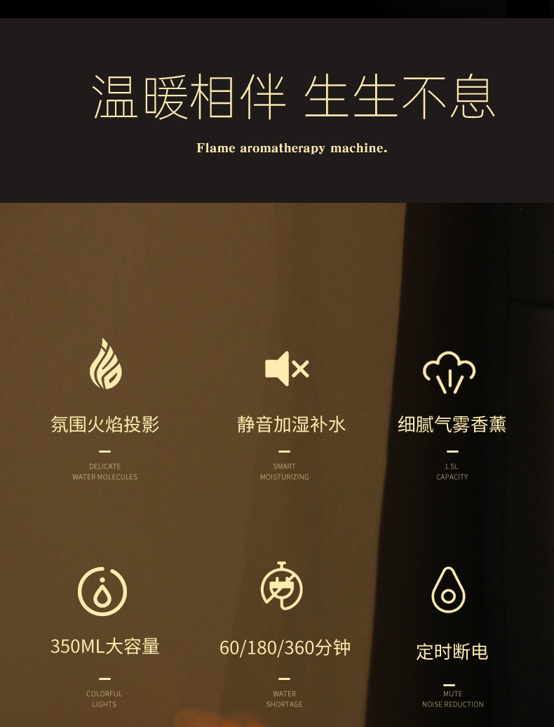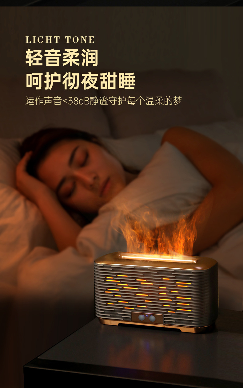 仿真火焰香薰机家用迷你智能精油桌面静音超声波3D火焰香薰加湿器