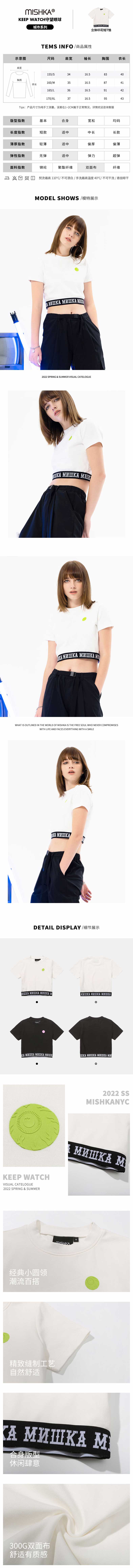 MISHKA大眼球潮牌2022春夏新品 女士短款修身休闲短袖T恤上衣M21100055W