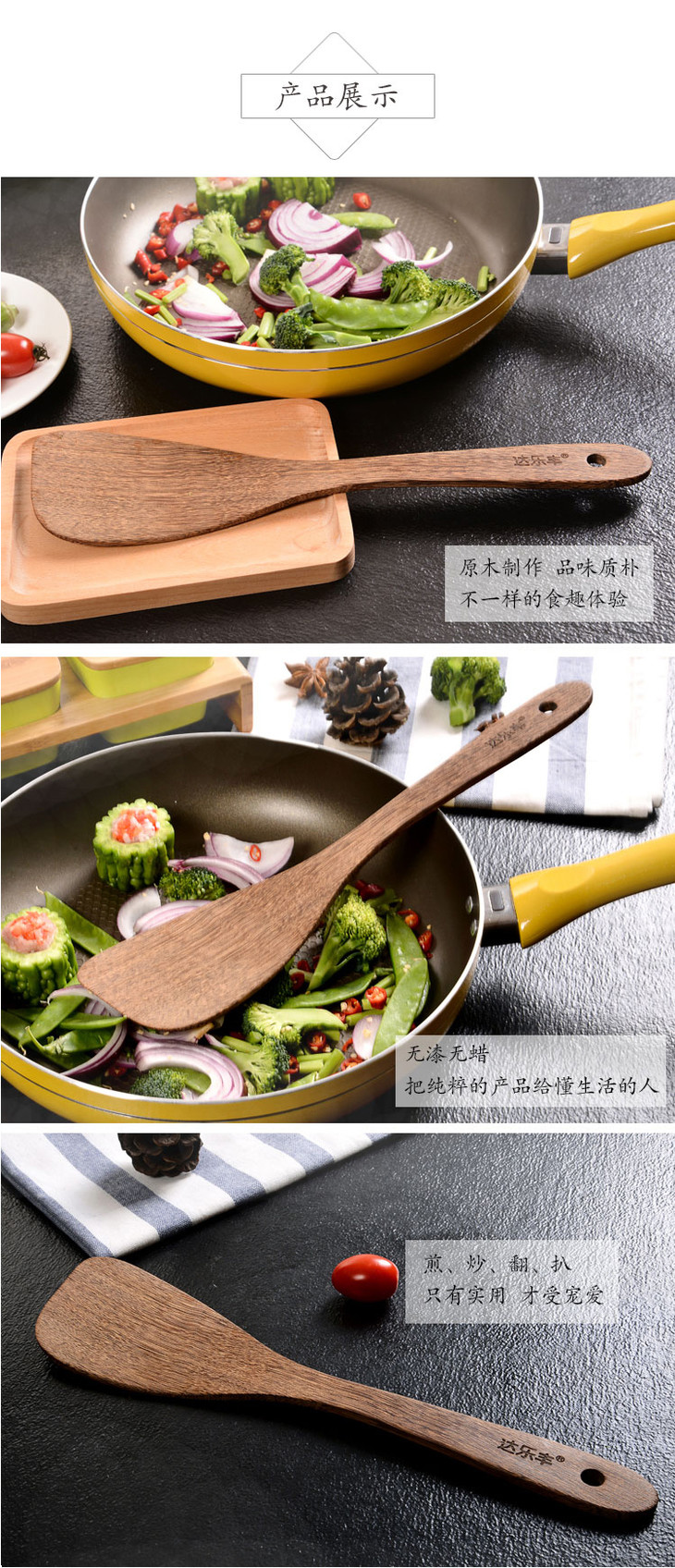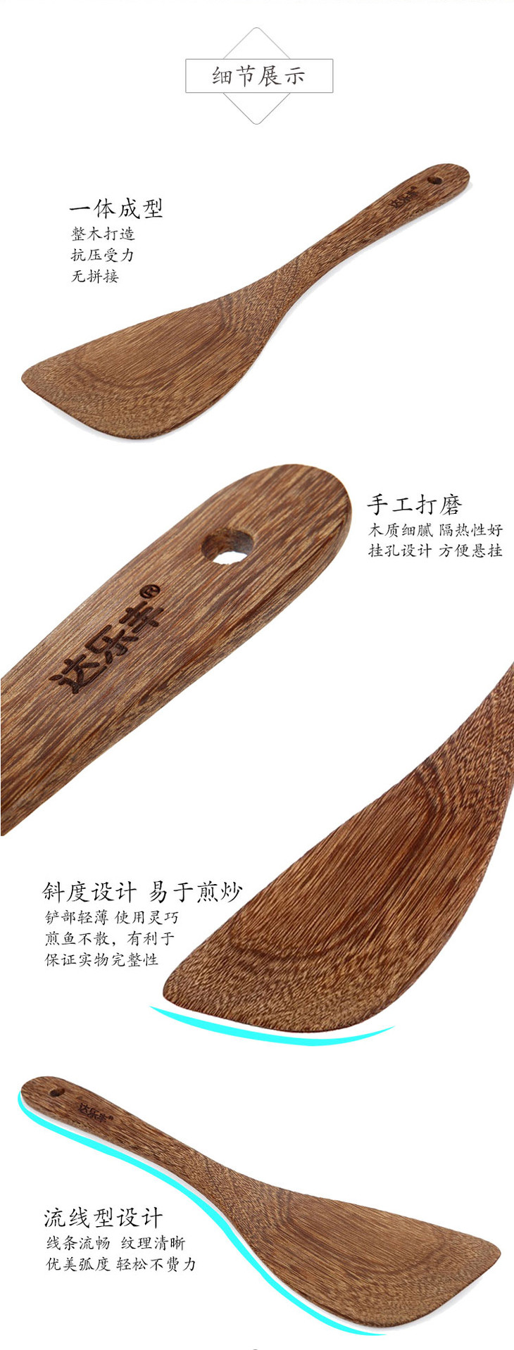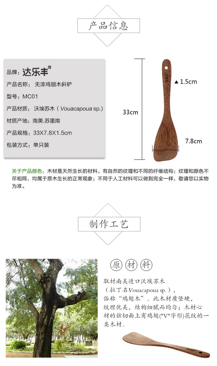 达乐丰鸡翅木铲子不粘锅专用无漆实木锅铲斜铲