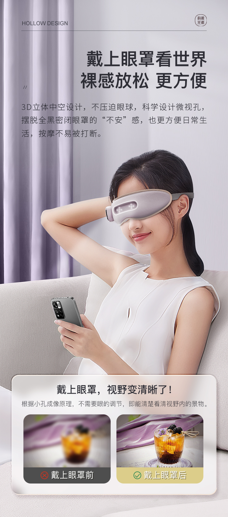 科爱元素轻薄按摩眼罩, 每分钟上千次点动刺激,抡刮眼眶,做深度眼部SPA【G】