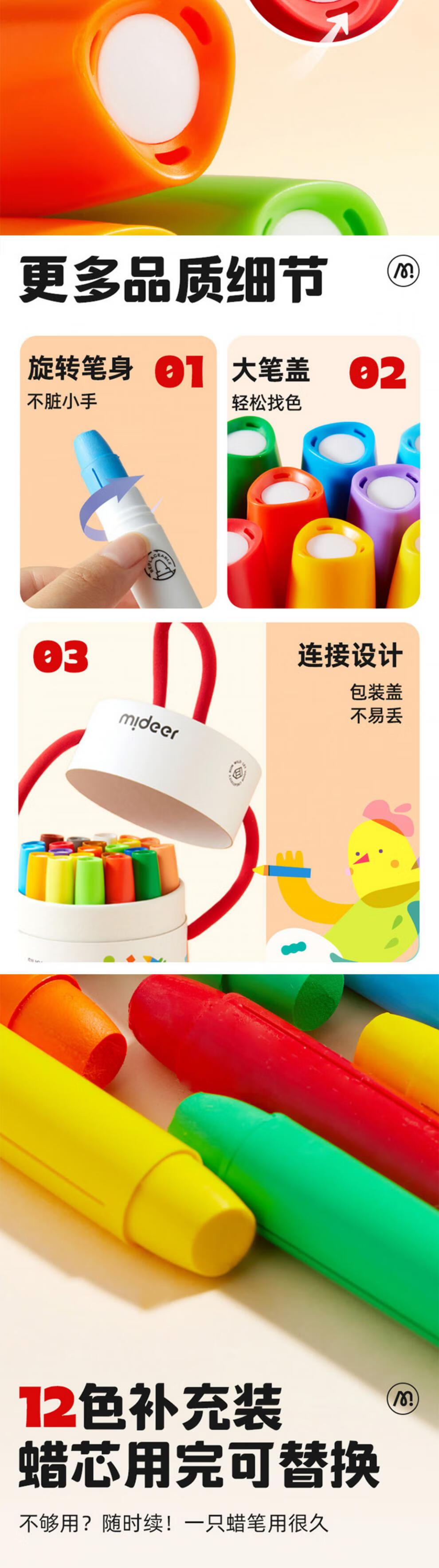 mideerMD4257速干丝滑蜡笔-能量补充棒12色