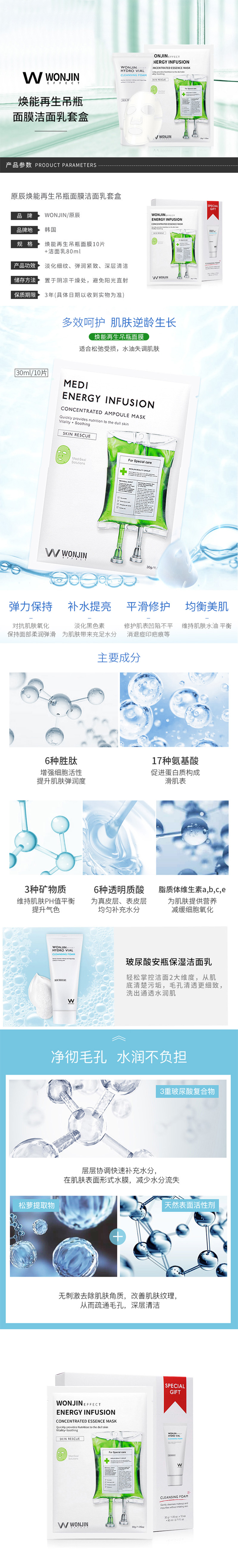 韩国原辰 吊瓶面膜带洗面奶10片/盒