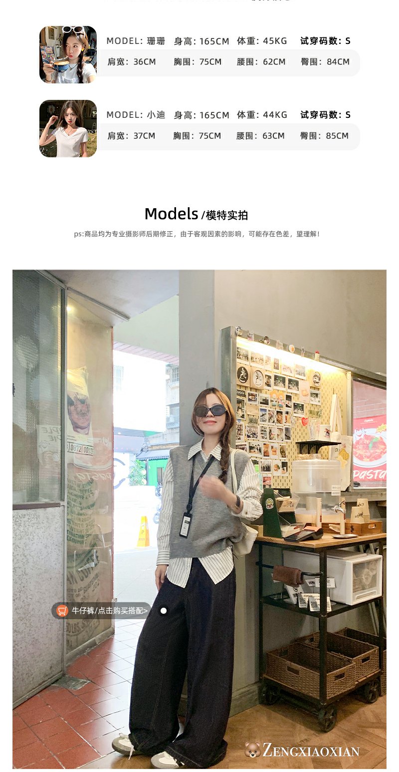 <曾小咸推荐> 现货秒杀!微信超特价!灰色v领针织马甲 日常139.99 立减70 秒杀69.99!条纹衬衫 日常179.99 立减90 秒杀89.99!