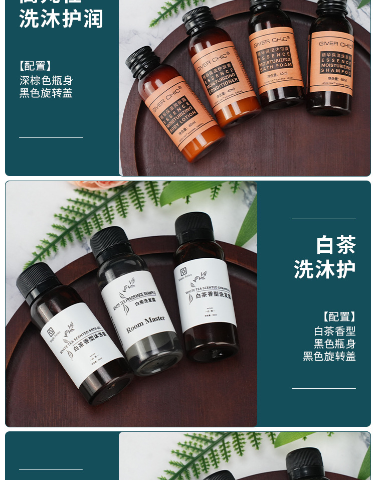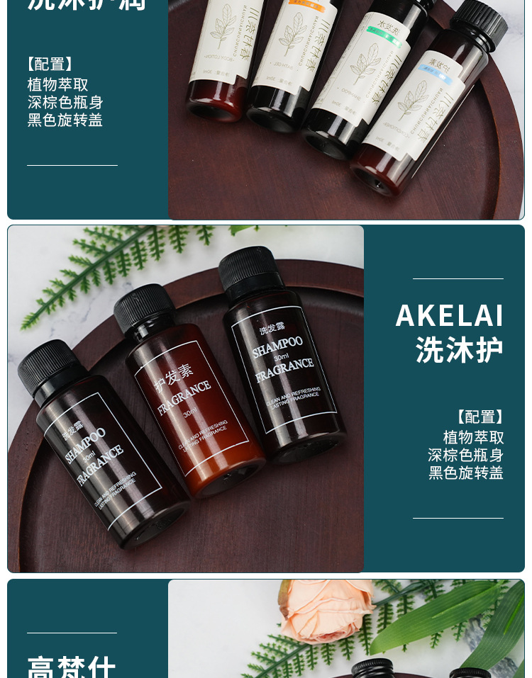 高档酒店宾馆民宿一次性小瓶装洗发水沐浴露护发素洗沐套装消耗品