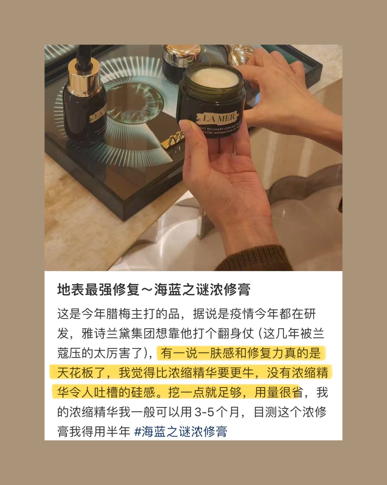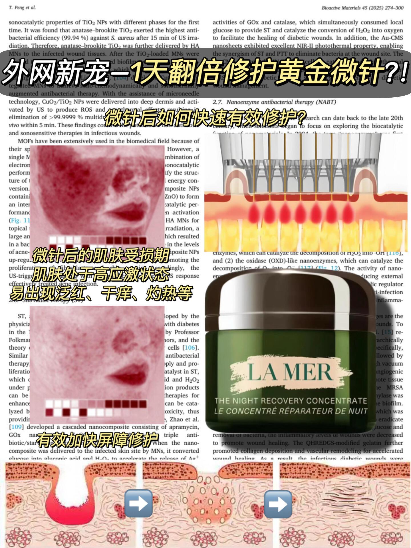 最让我震惊的就是在其他护肤品还没搞清自己定位的时候,海蓝之谜浓修膏已经把黄金微针实证报告摆大家眼前了⚠️