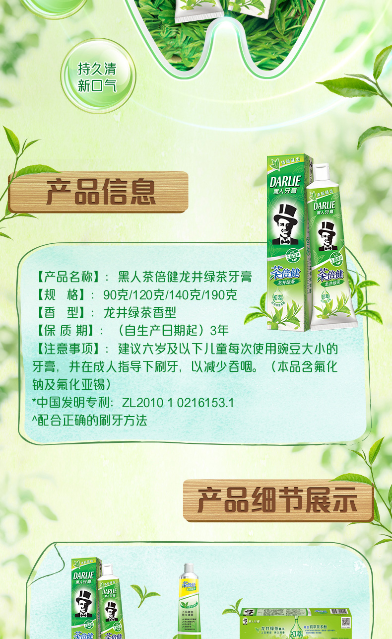 【140克】黑人牙膏茶倍健绿茶140克*1支装