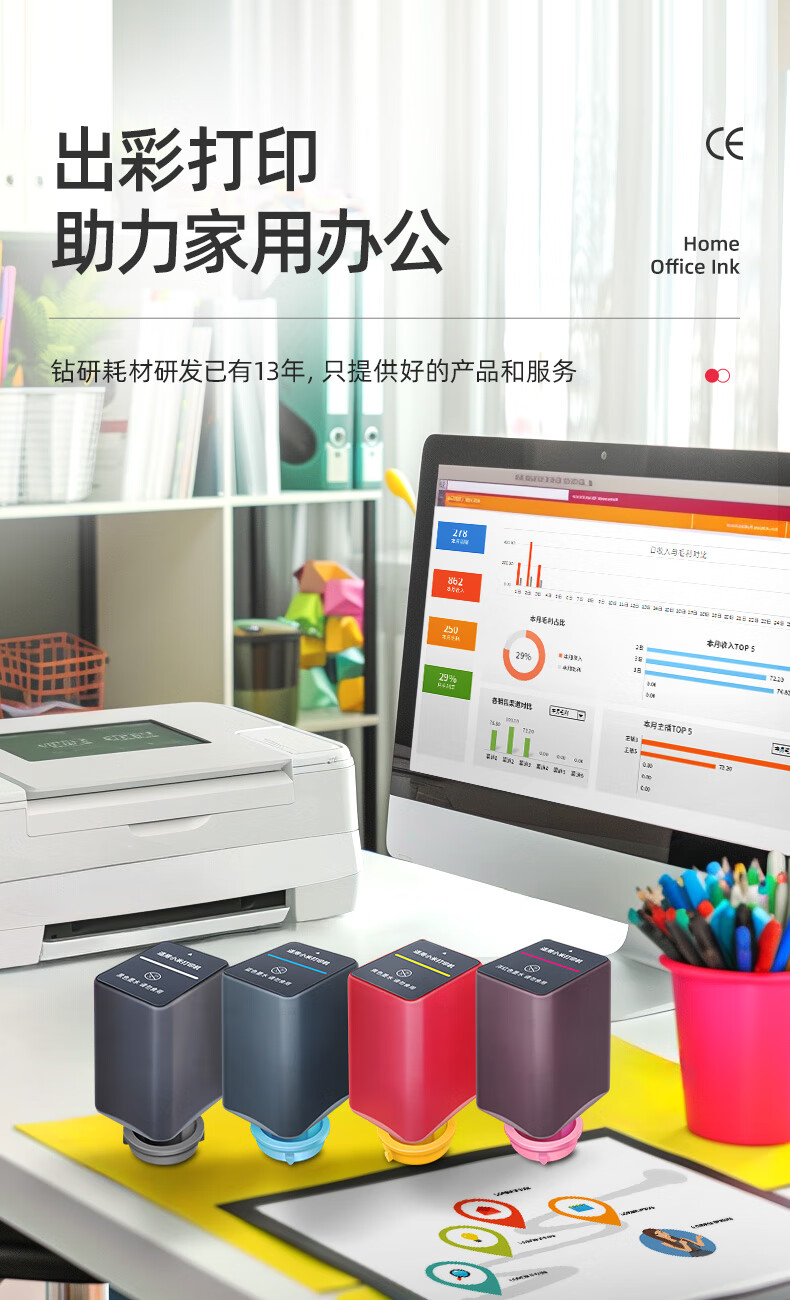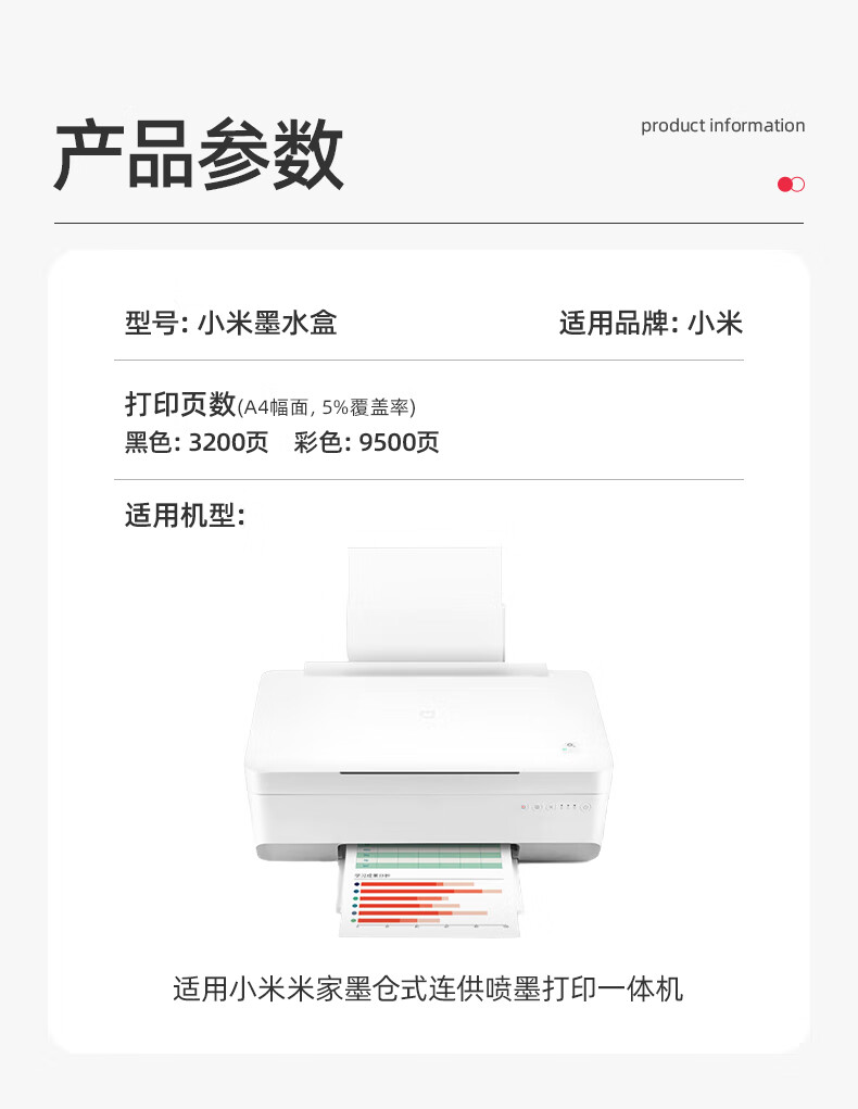 绘威 适用小米米家喷墨打印机墨水 小米墨仓墨水盒 小米家用办公墨仓式打印机PMDYJ01HT墨水盒 四色套装