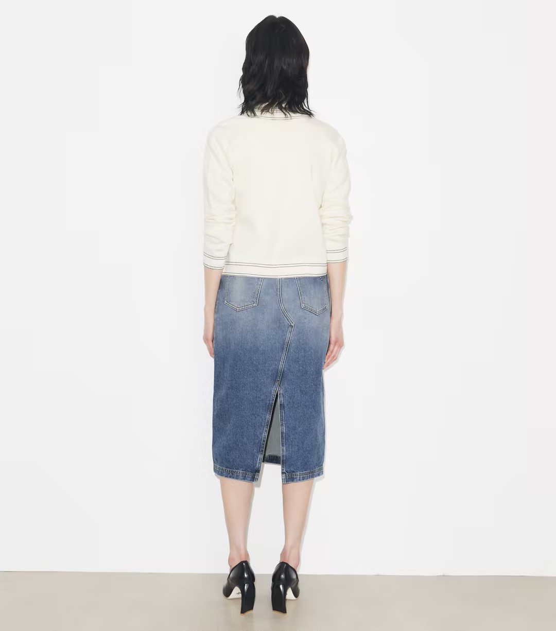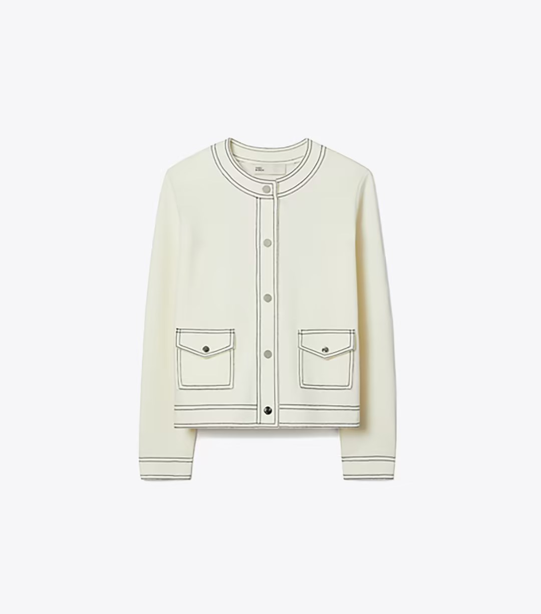 这款羊毛开衫,融合撞色明线等实用主义设计元素,呈现几何视觉美感。搭配同系列半身裙,可为裙装造型增添随性格调。