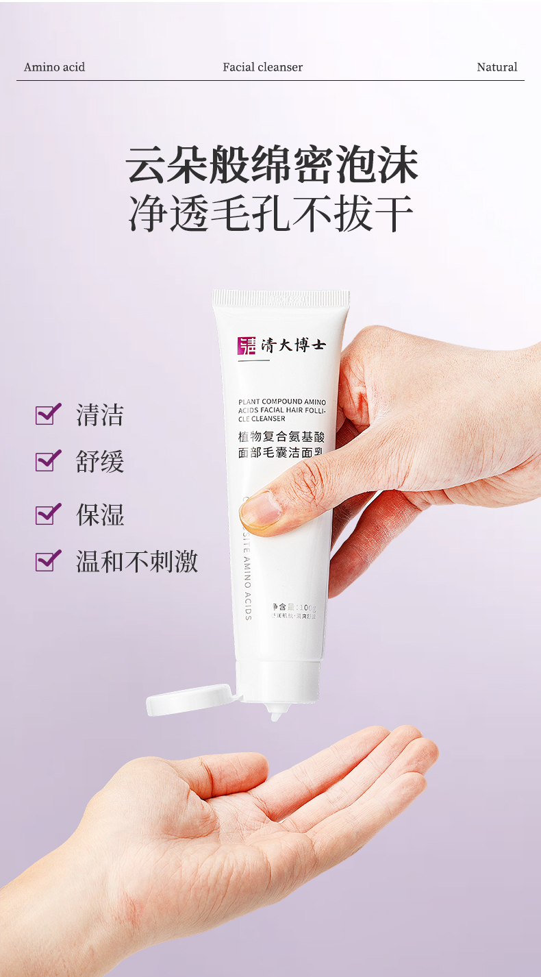 【品名】清大博士 植物复合氨基酸面部毛囊洁面乳 舒缓保湿 温和不刺激 100g/支 【规格】 100g*1支 100g*3支(赠起泡网*1,小鸭子发卡*1,洗脸扑*1) 【备案编号】粤G妆网备字2025028318 【产地】国内 【保质期】3年 【发货包装】独立包装 【发货地】北京 【发货快递】中通 【补邮费地区】新疆、西藏、内蒙古、宁夏、甘肃、青海、海南+9元/单 【发货时效】48-72小时,周末节假日顺延 |