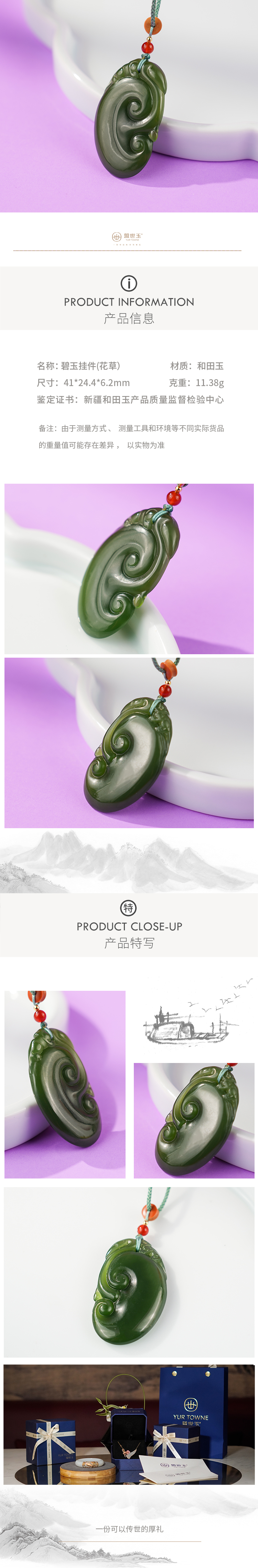 新疆国玉盟世玉碧玉挂件(花草)【带证书·顺丰物流】