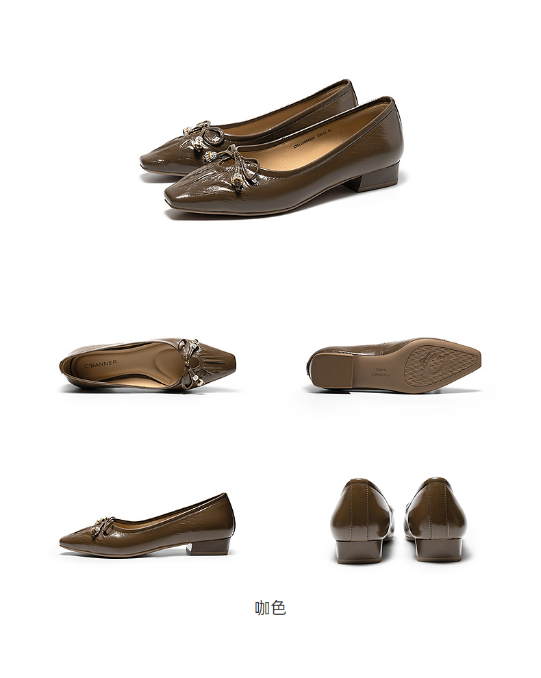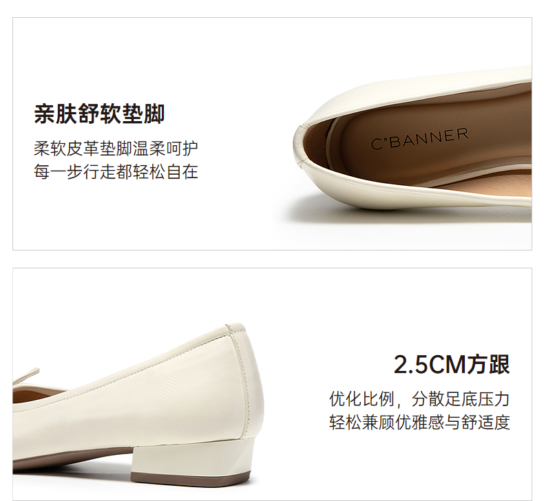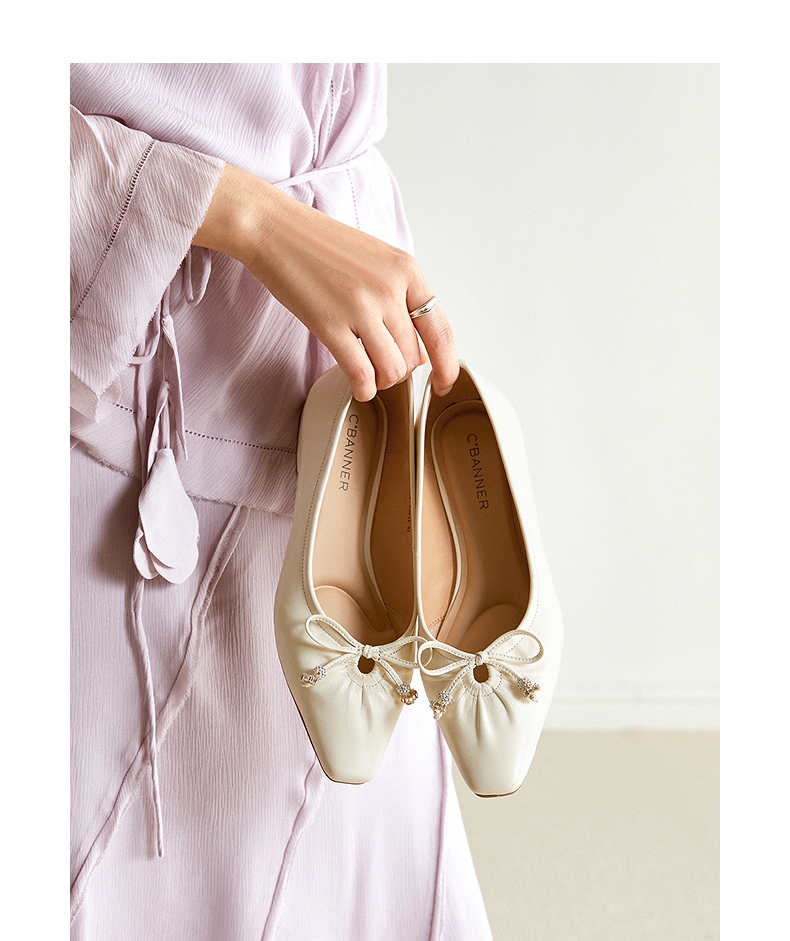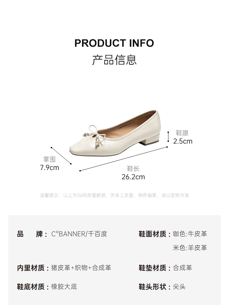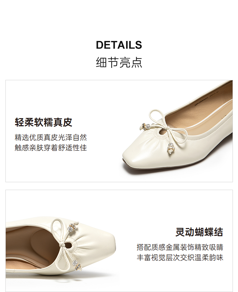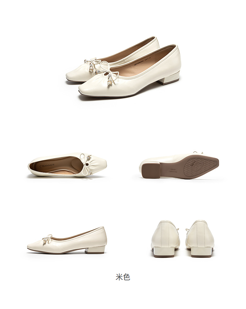 千百度蝴蝶结粗跟浅口单鞋女2026春季新款羊皮低跟通勤气质晚晚鞋A26125064