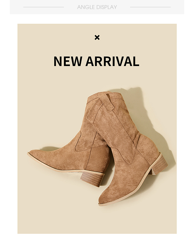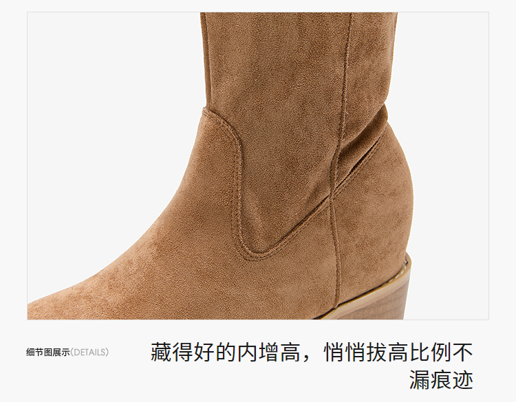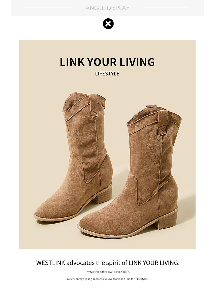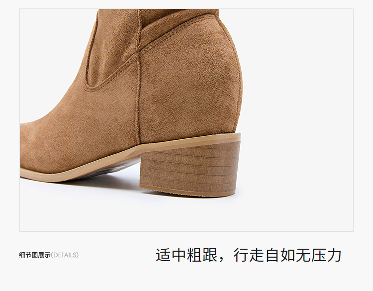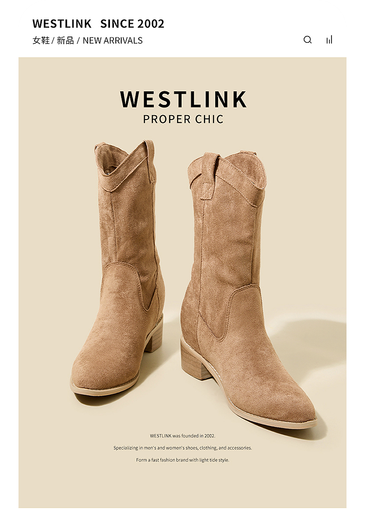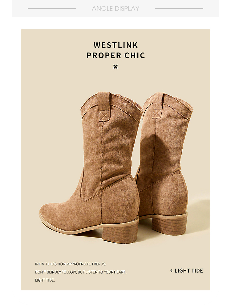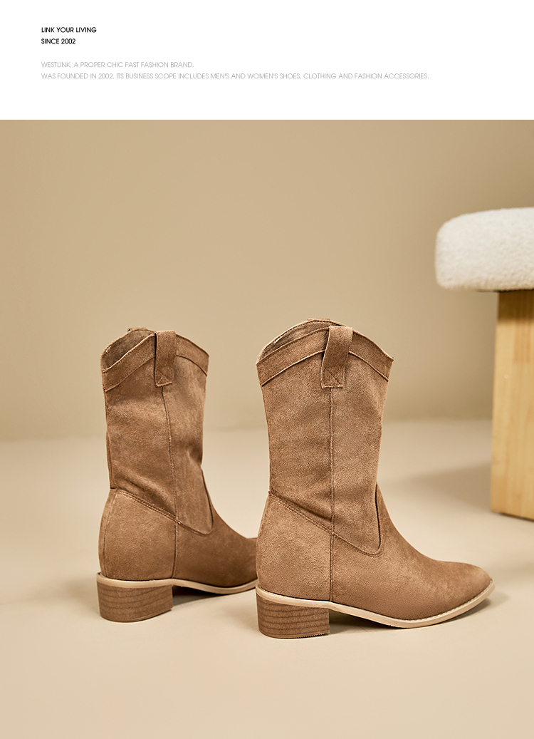 西遇内增高西部牛仔靴女新款秋冬复古废土风V口粗跟棕色短靴V2257224