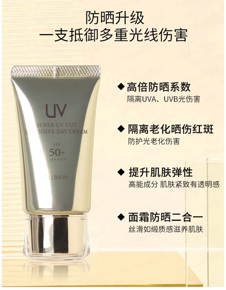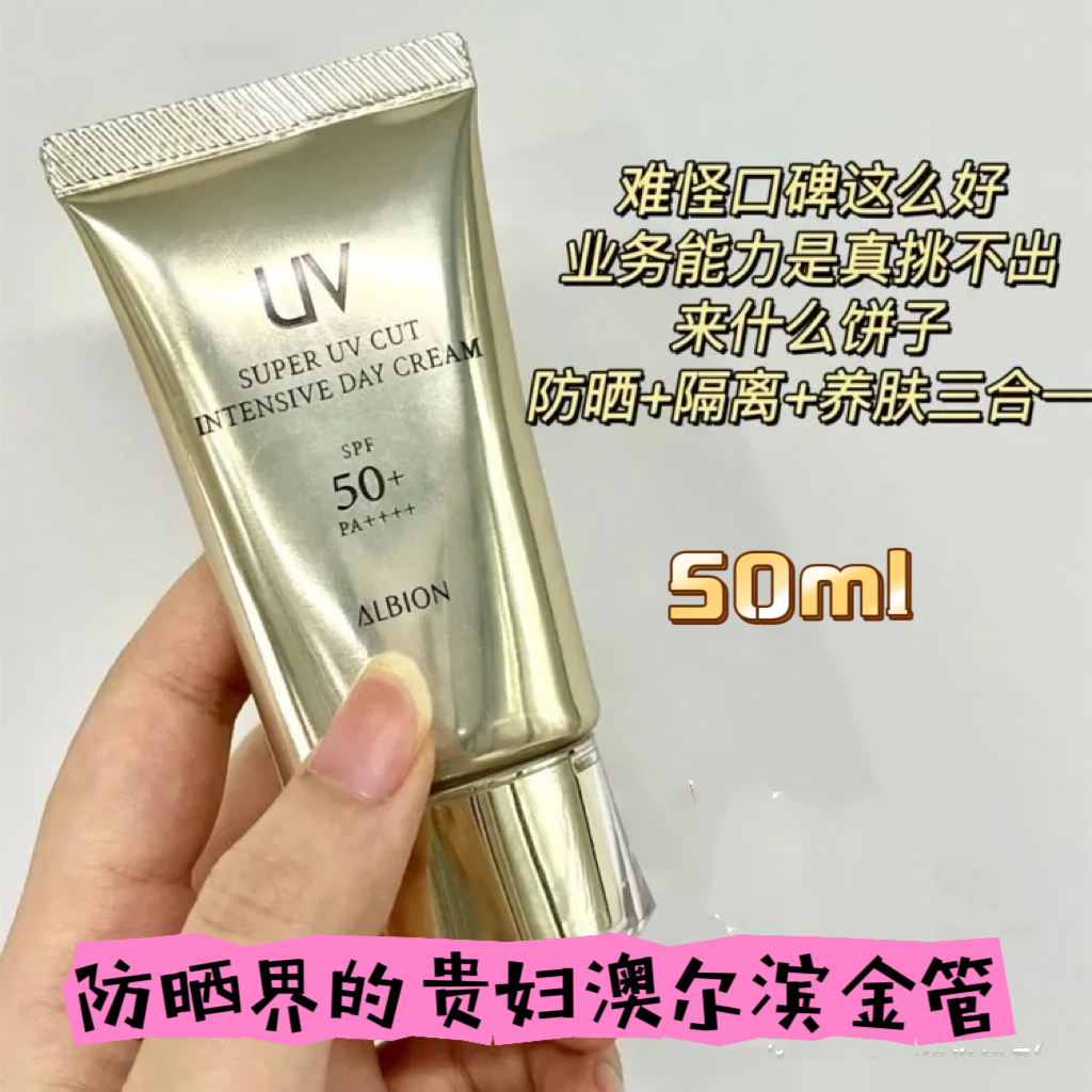 【品名】Albion奥尔滨金管紧颜修护抗老防晒霜SPF50+PA++++50g防晒乳液
