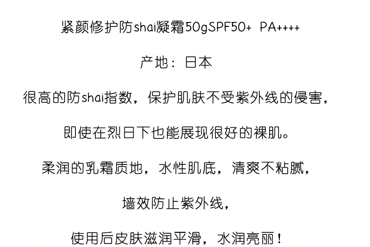 紧颜修护防晒凝霜(金色管)SPF50 PA++++
