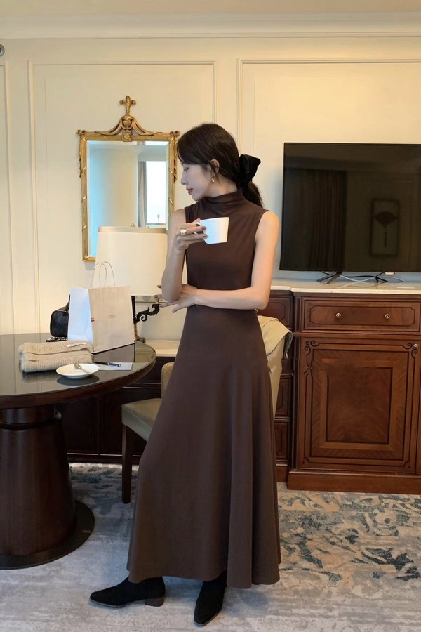 SIA SAYLOR 棕咖美拉德高领连衣裙 19237