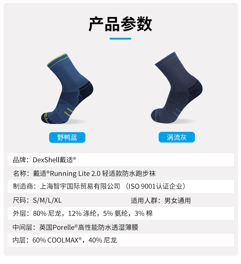 DexShell 戴适 Running Lite 2.0 轻适款防水跑步袜 DS20610 2.0