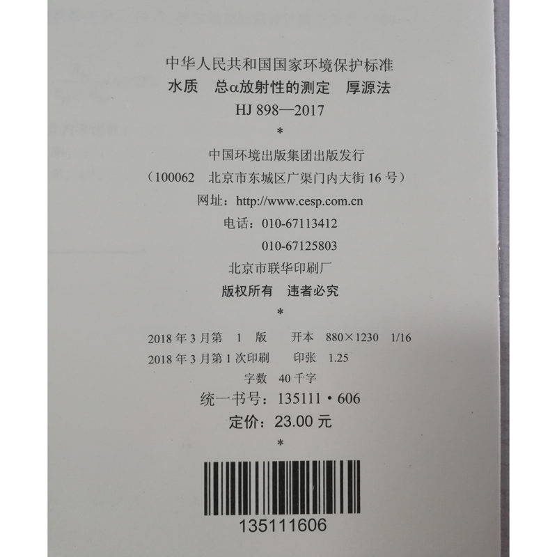 HJ 898—2017水质 总α放射性的测定 厚源法 国家标准GB 环境保护 环境科学 135111606