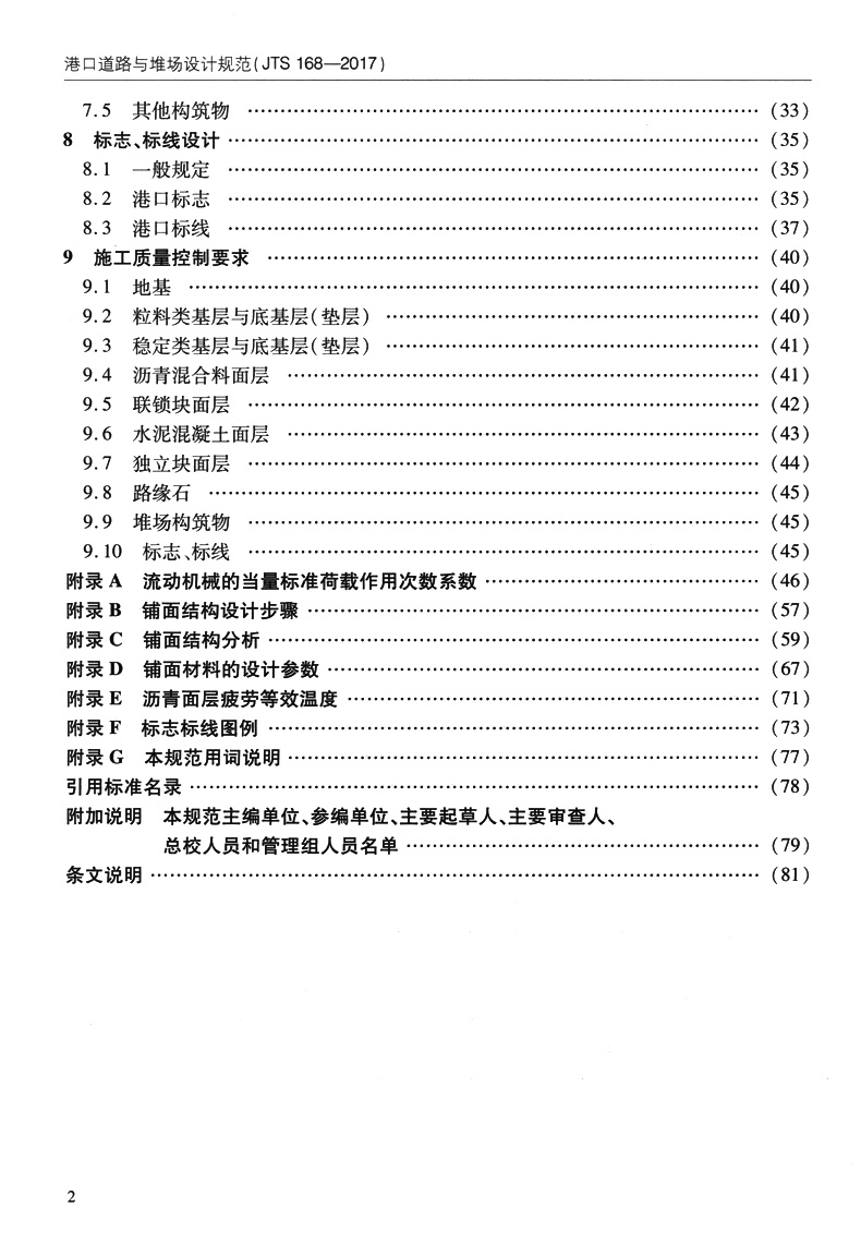 本规范共分9章和7个附录,并附有条文说明。 主要包括道路与堆场总体设计,地基设计,铺面结构设计,堆场构筑物结构设计,标志、标线设计,施工质量控制要求等技术内容。