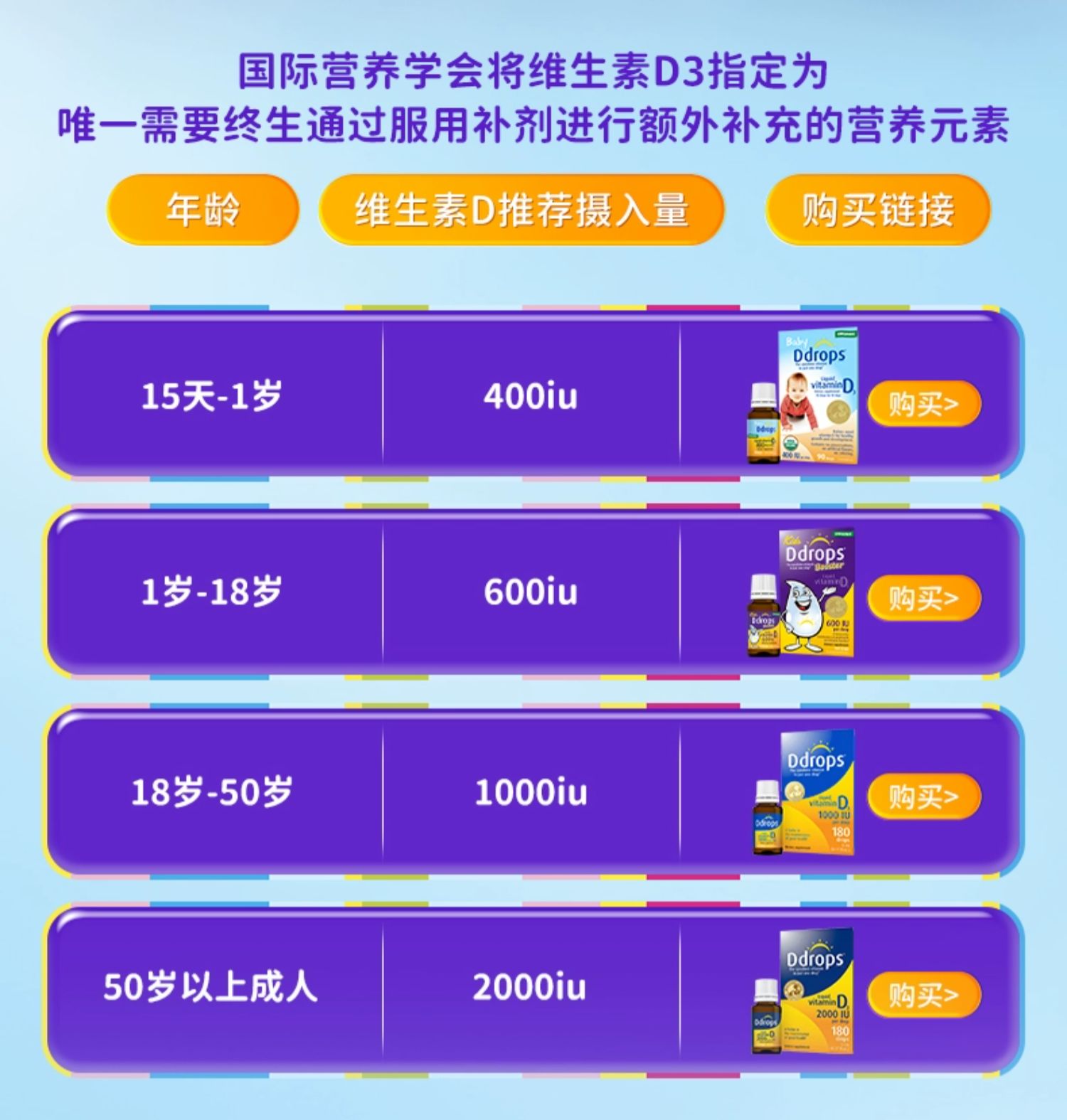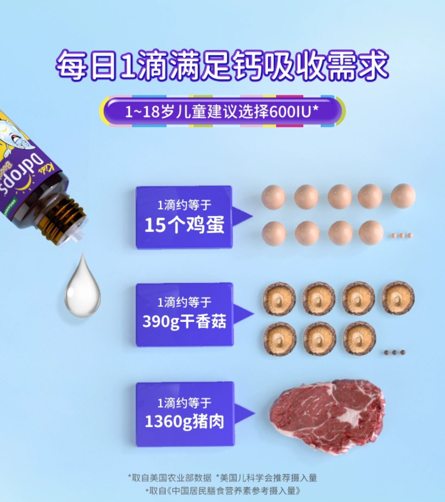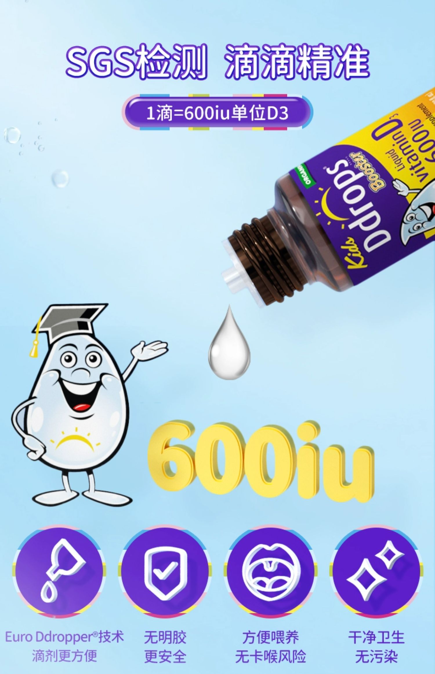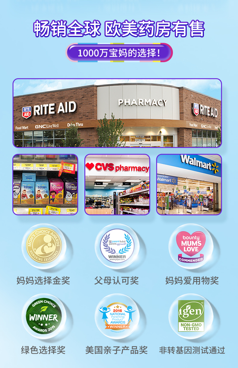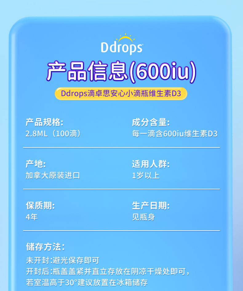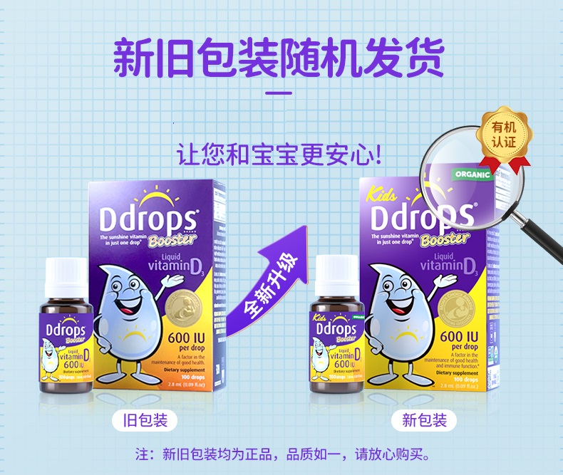 【品牌防伪码】Ddrops滴卓思 幼儿维生素D3 600IU100滴(紫色)