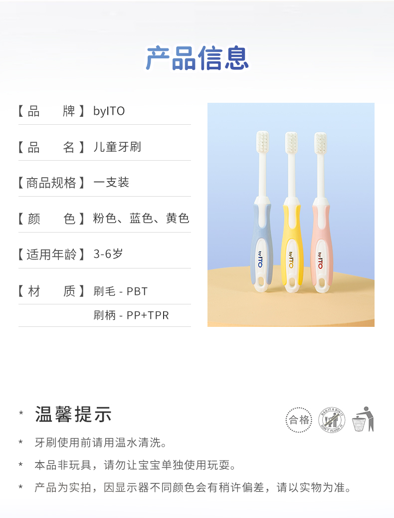 ITO 儿童牙刷-3-6岁适用 (随机颜色发货不接受备注指定)