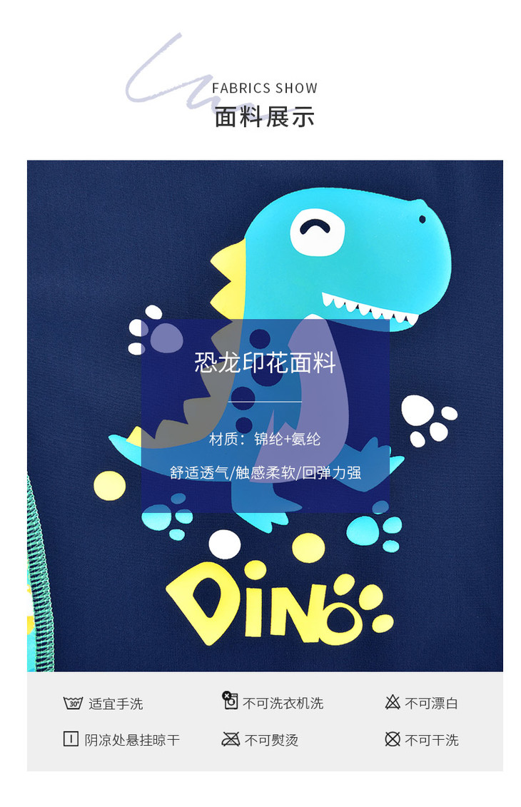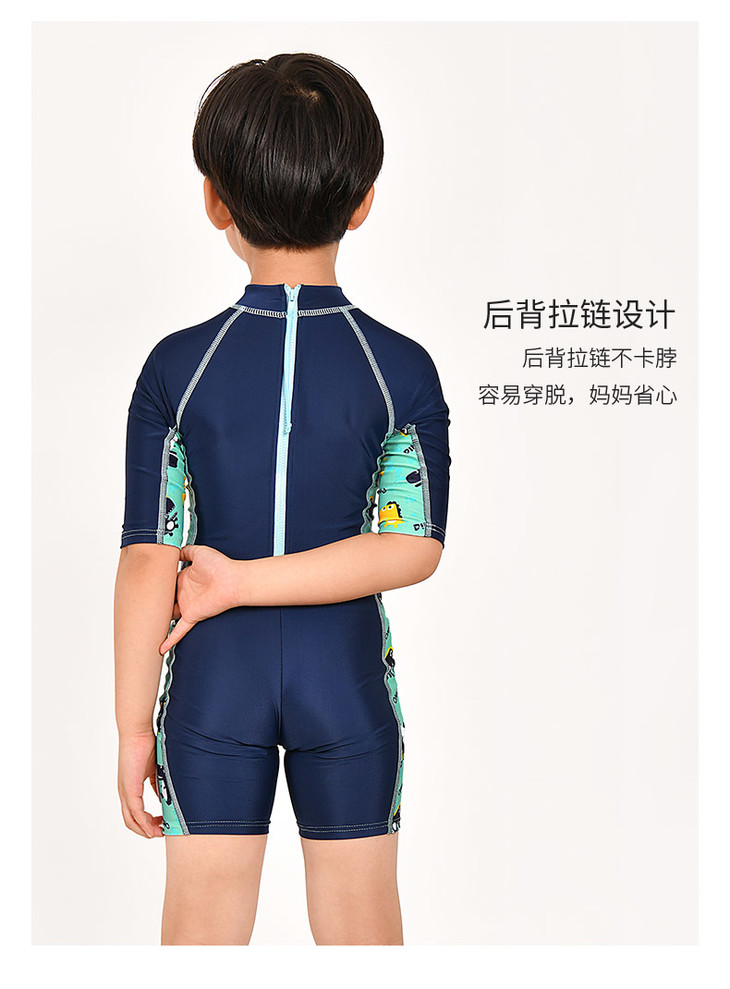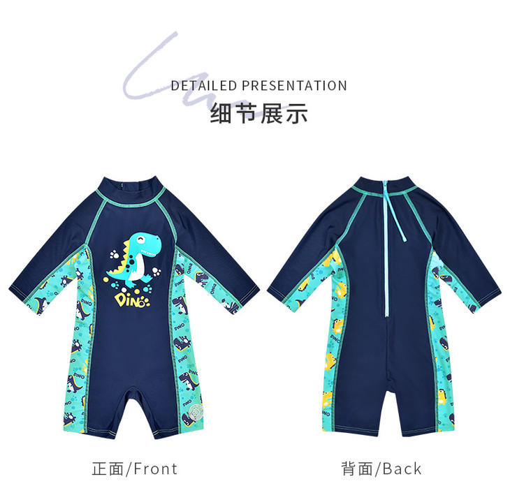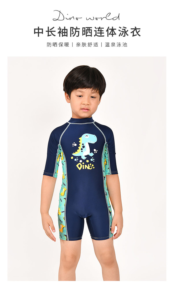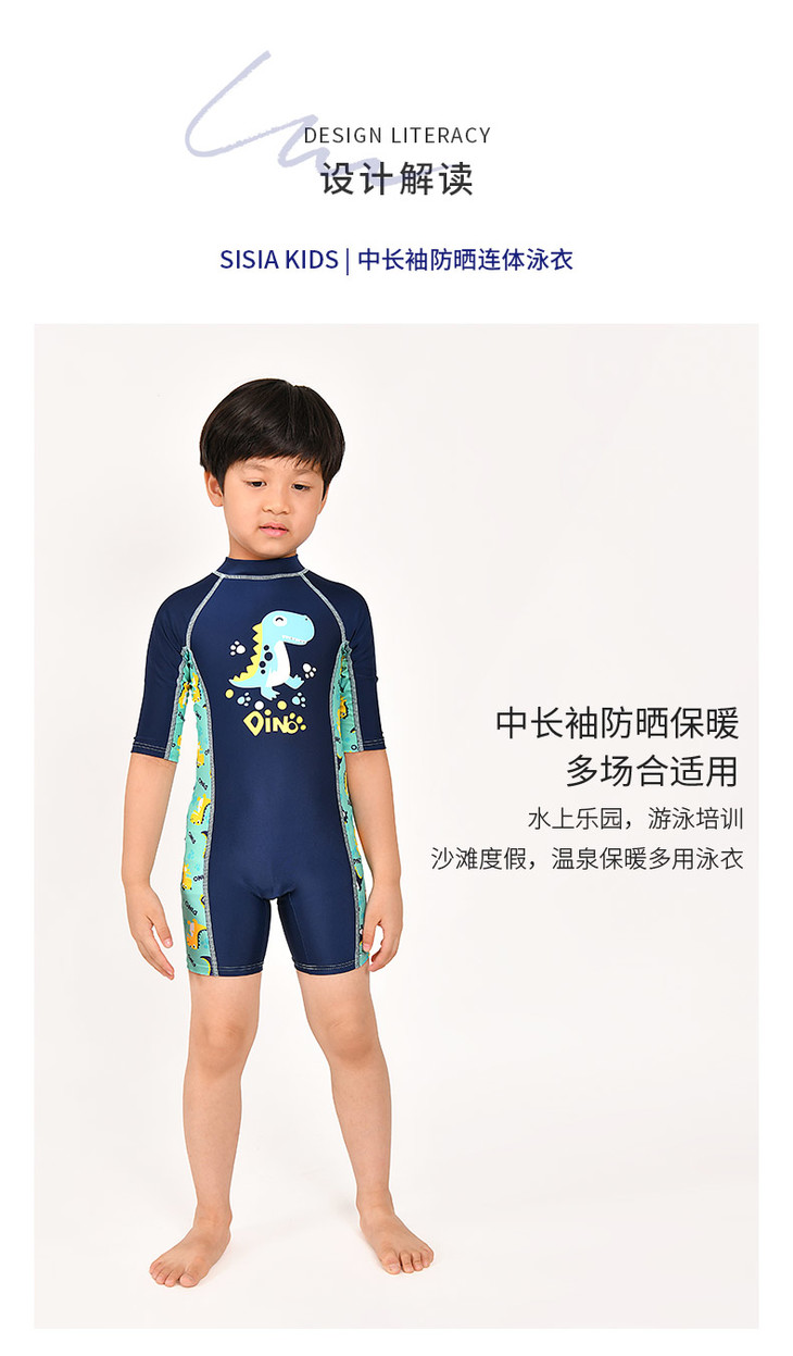 sisia儿童泳衣男童新款可爱恐龙中长袖防晒中大童连体游泳衣