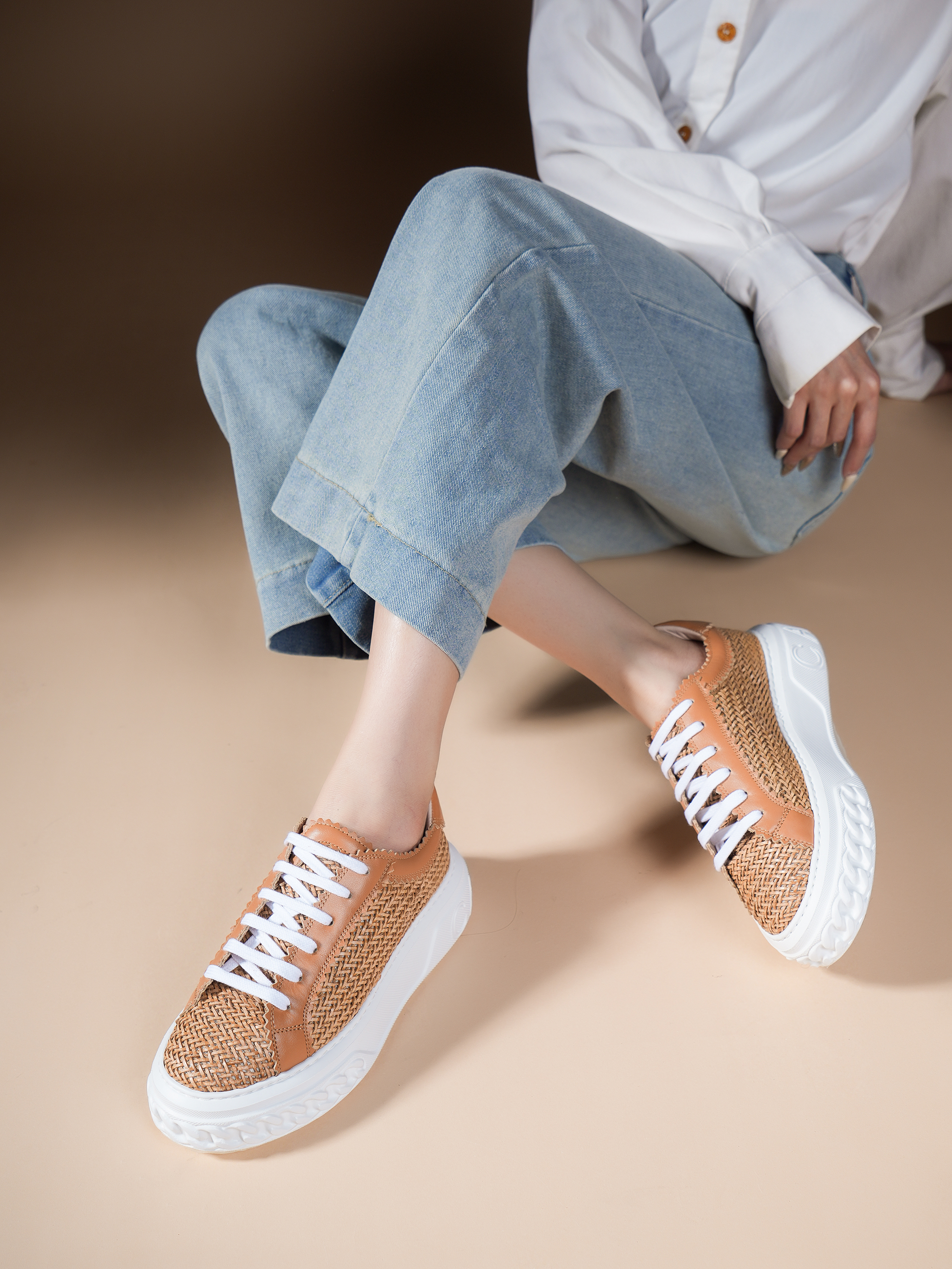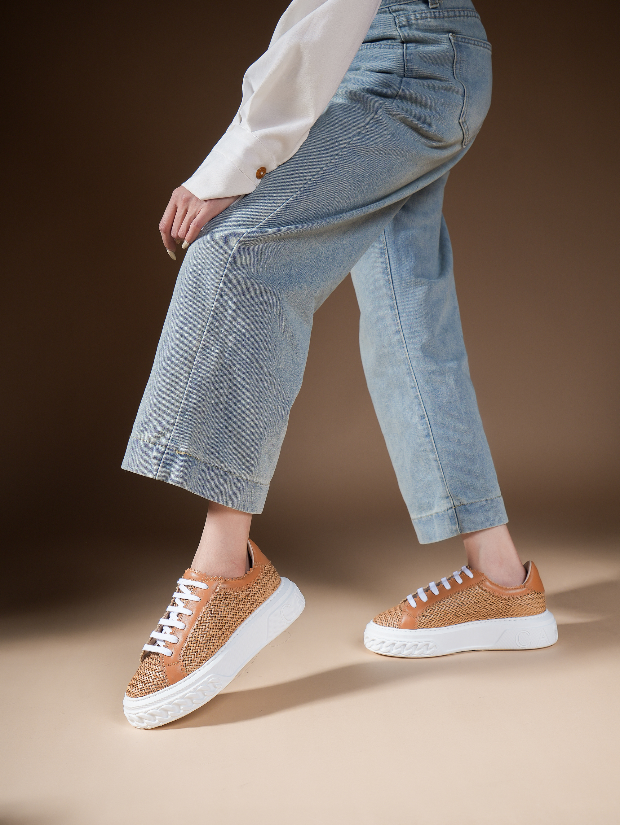 豪麟名鞋CASADEI女鞋时尚休闲鞋织物+牛皮革2X822棕色