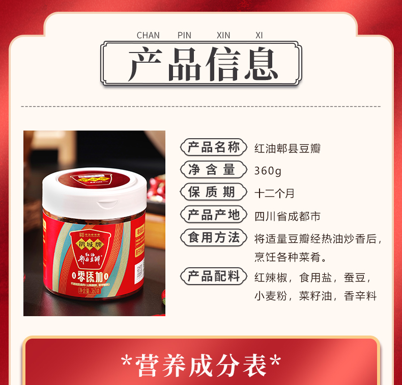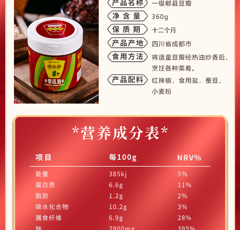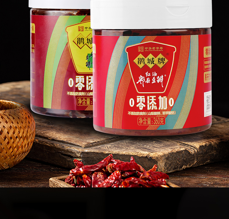 鹃城牌 零添加红油豆瓣360g*1瓶+零添加一级豆瓣360g*1瓶 易拉罐装使用方便家用炒菜调味料 两罐组合装