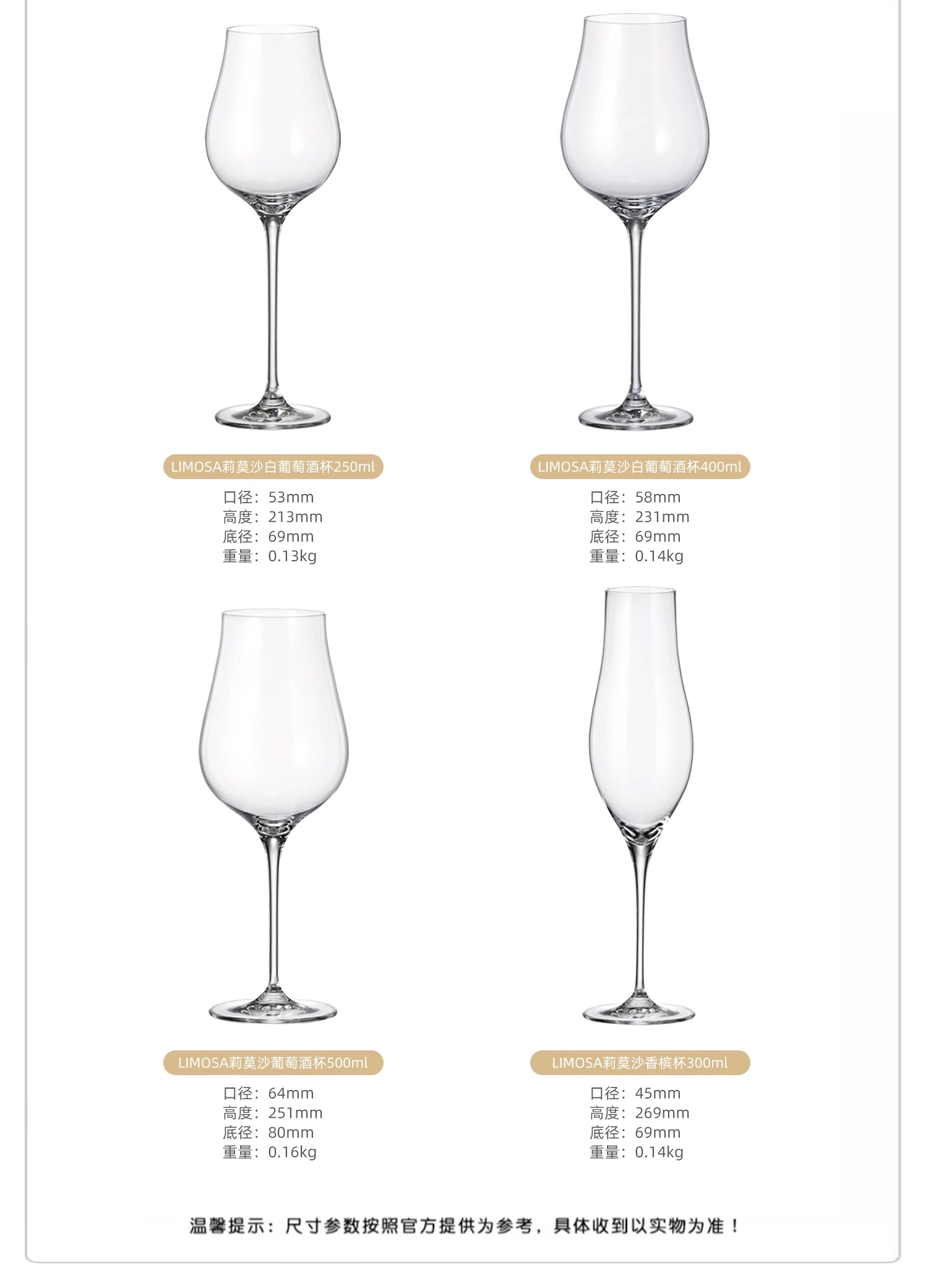 捷克BOHEMIA进口水晶玻璃红酒杯 葡萄酒杯简约风大容量家用套装波西米亚莉莫萨白葡萄酒杯250ml*6