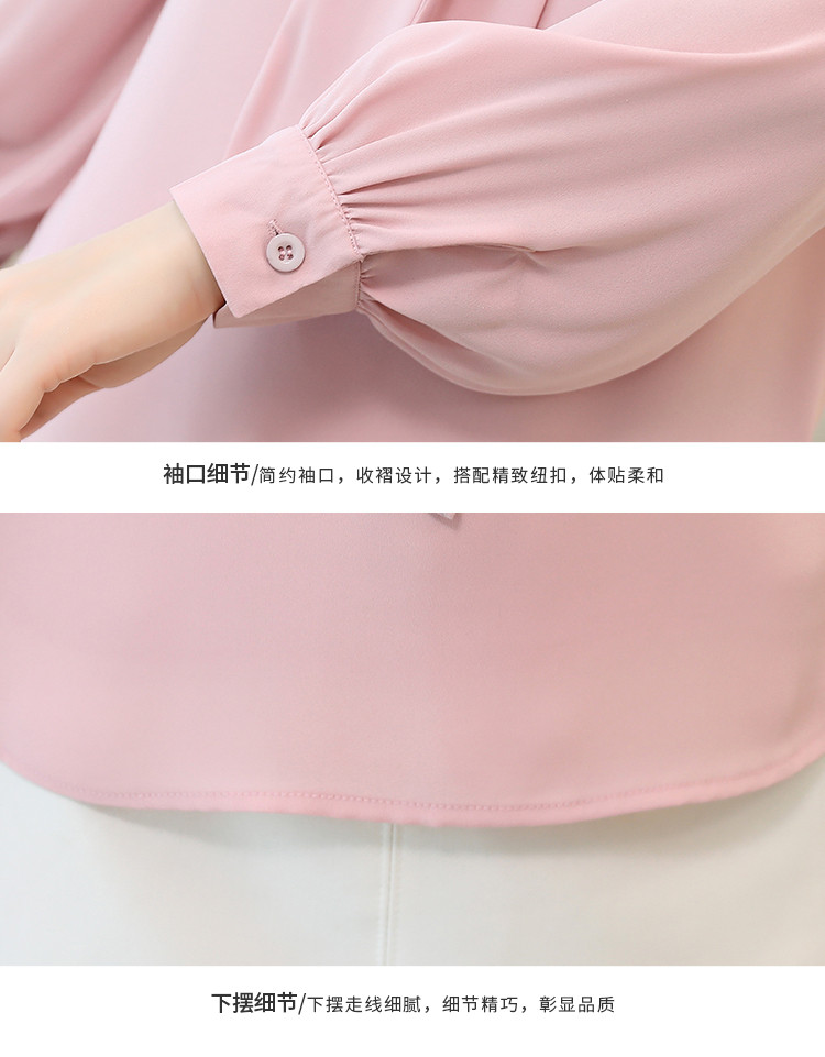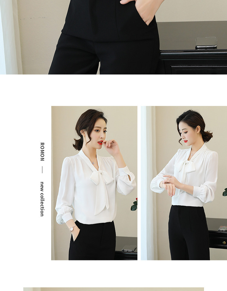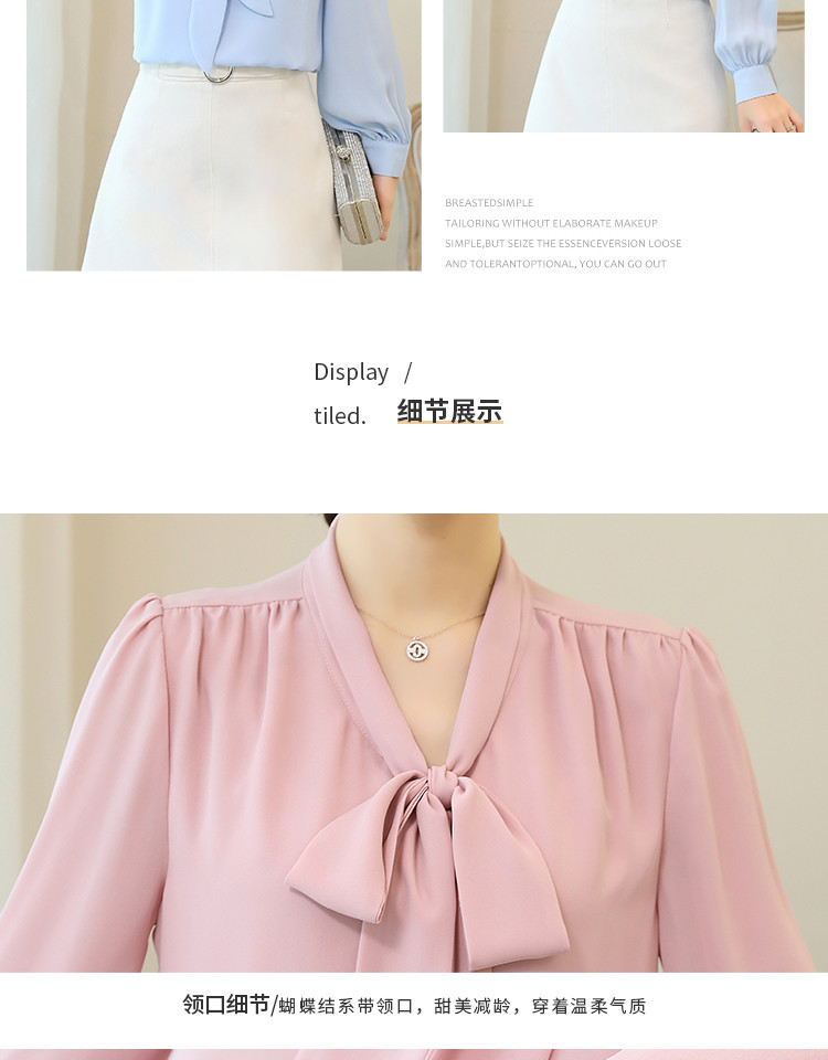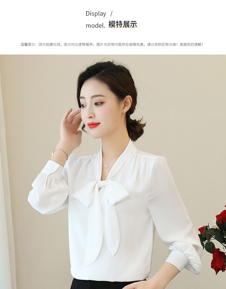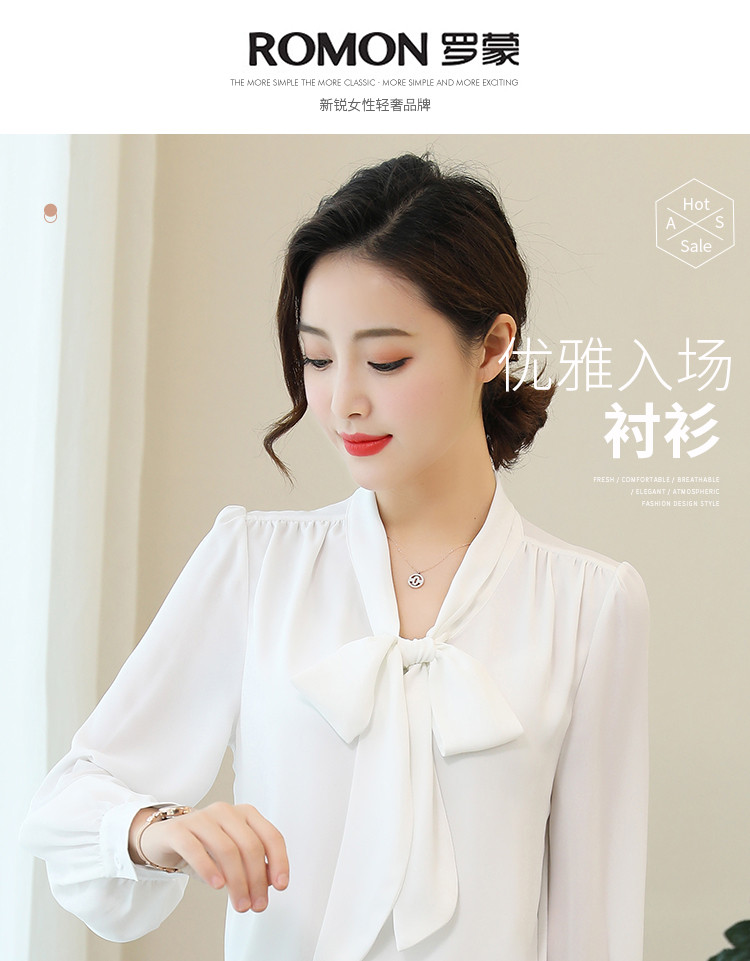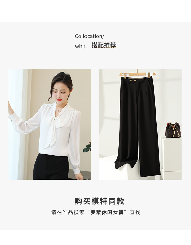 罗蒙春夏薄款雪纺长袖衬衫女士休闲百搭商务通勤蝴蝶结雪纺衬衣