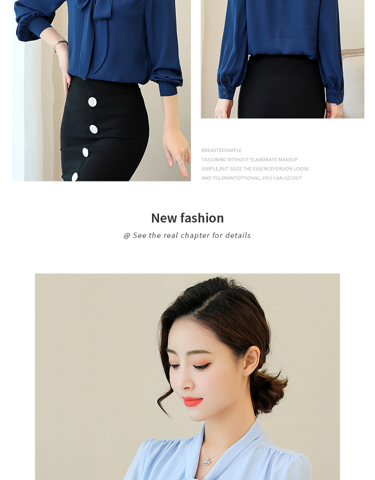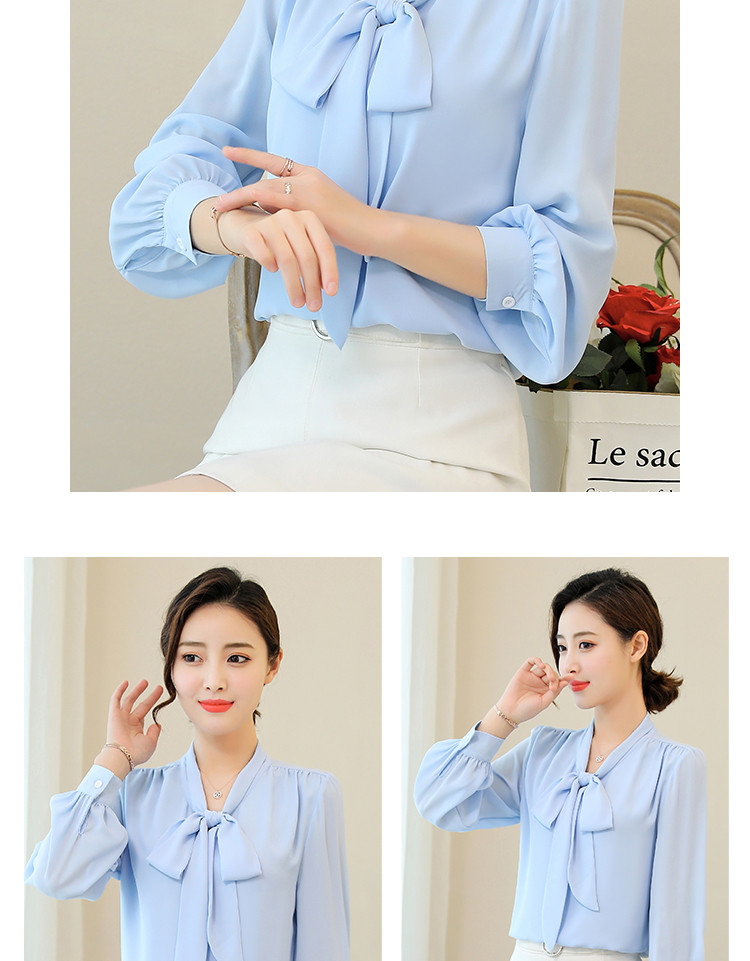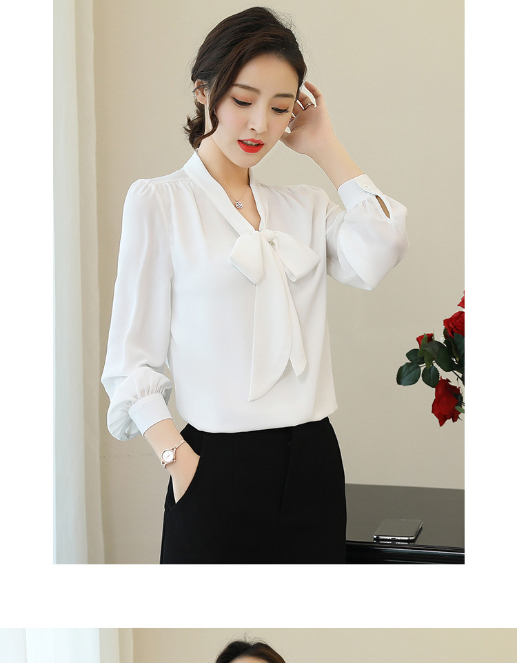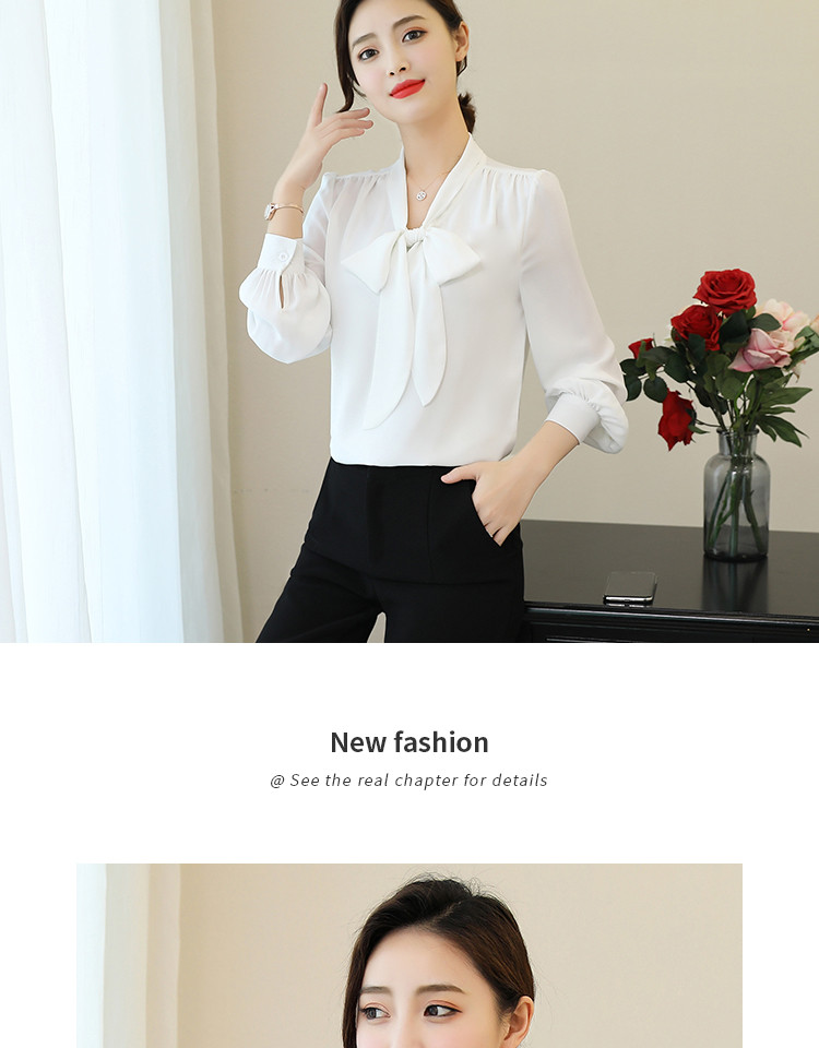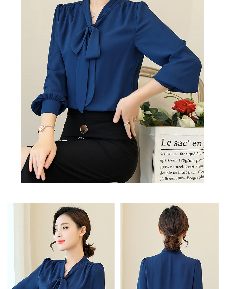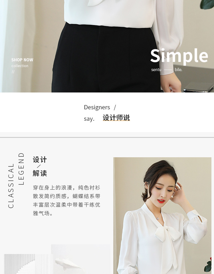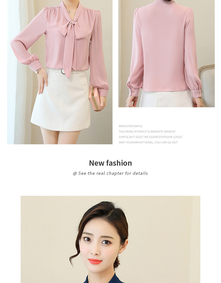 罗蒙春夏薄款雪纺长袖衬衫女士休闲百搭商务通勤蝴蝶结雪纺衬衣