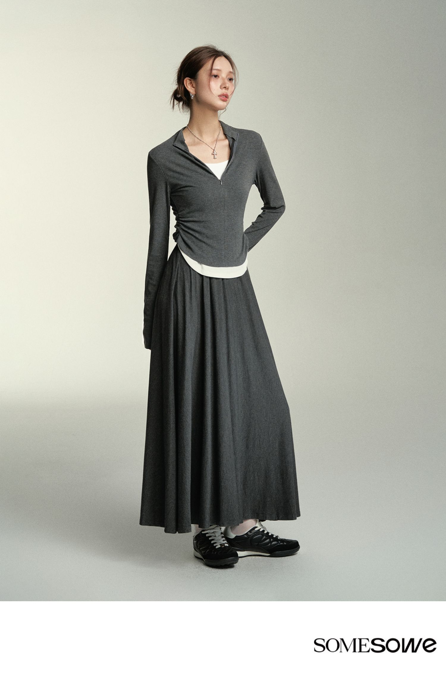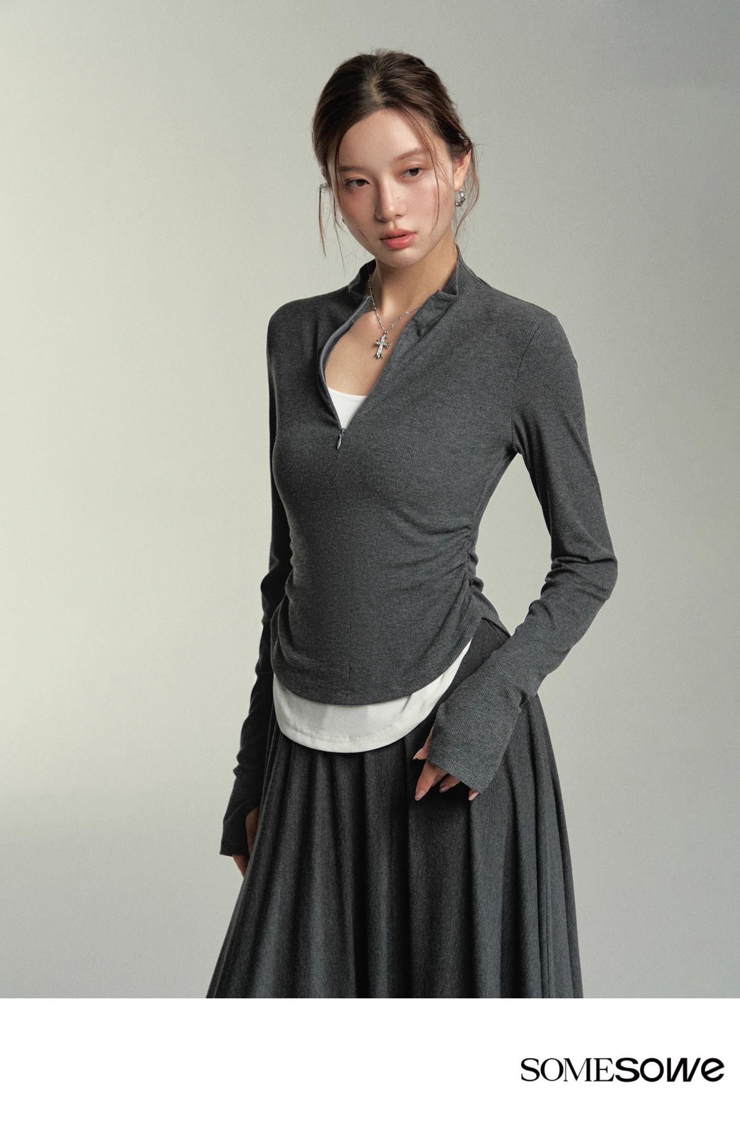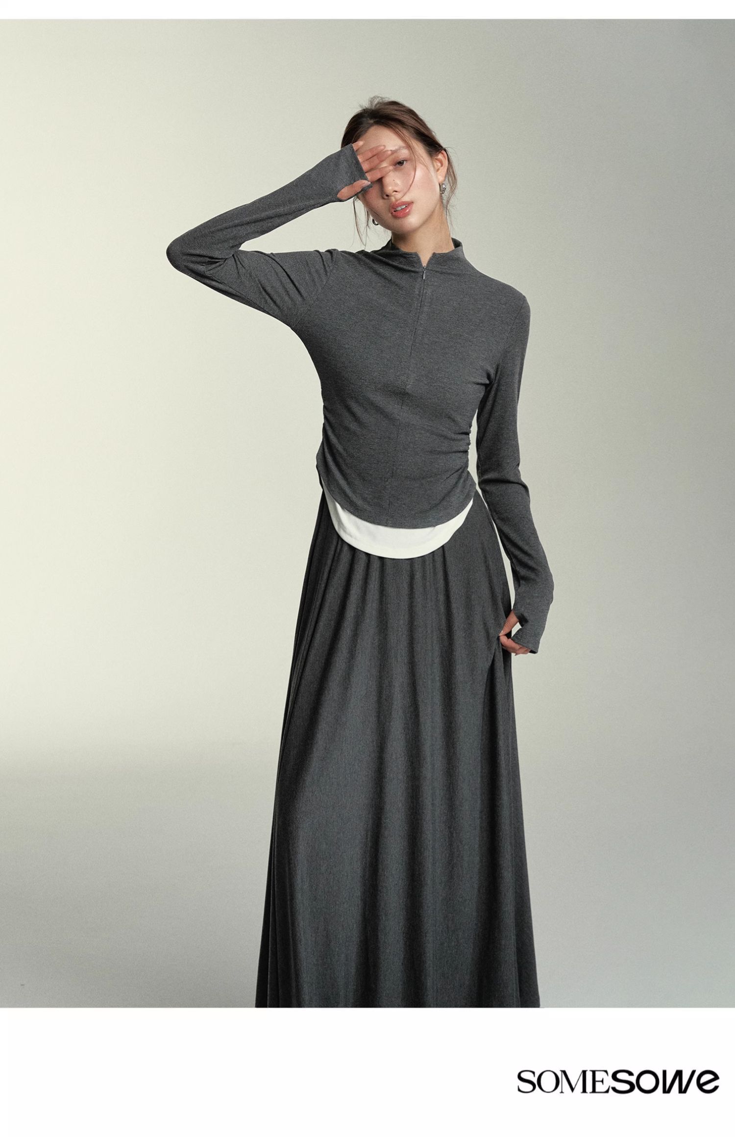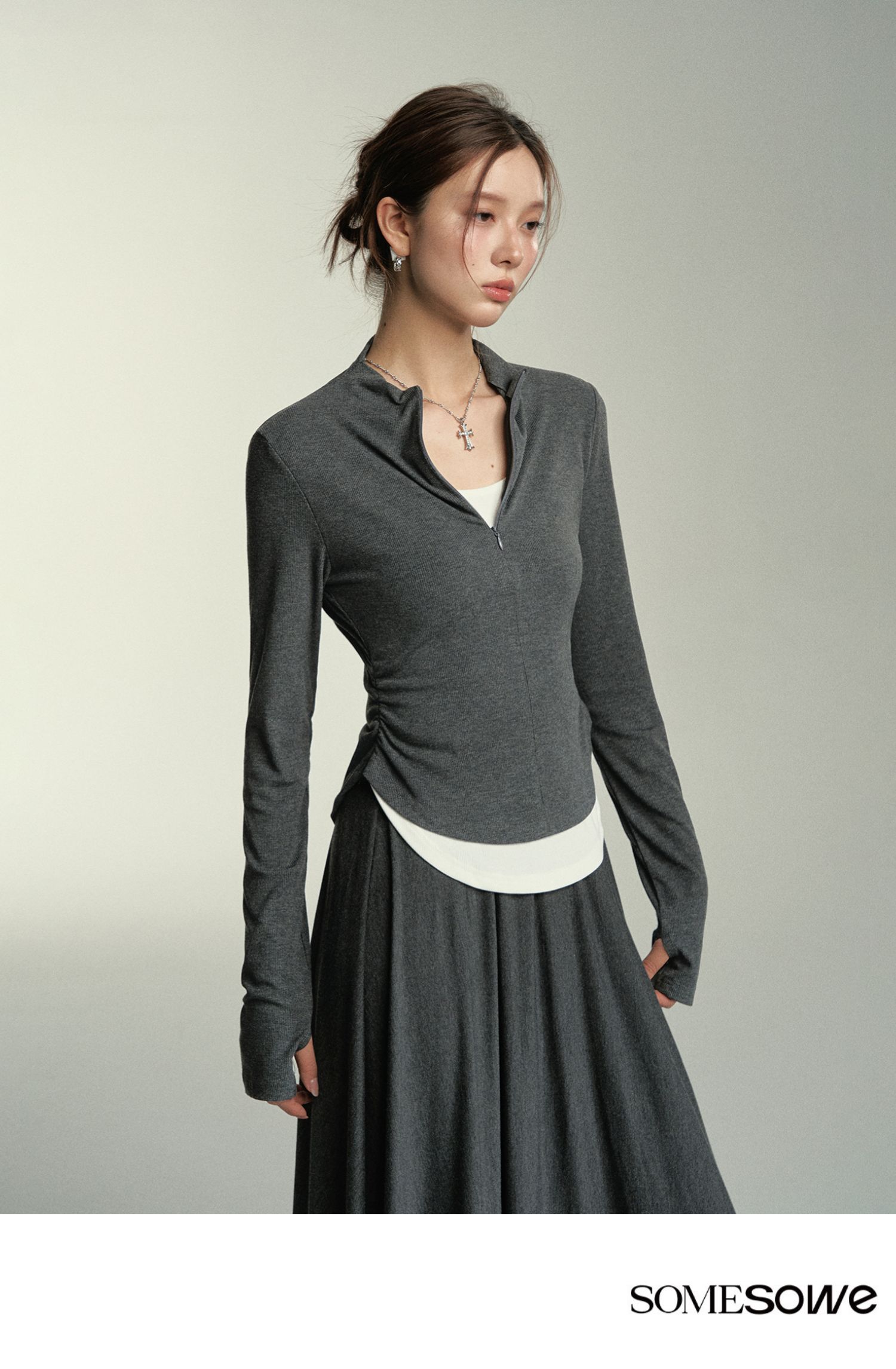 预售 | SOMESOWE 假两件弧形堆褶上衣-S2407050[福利品]