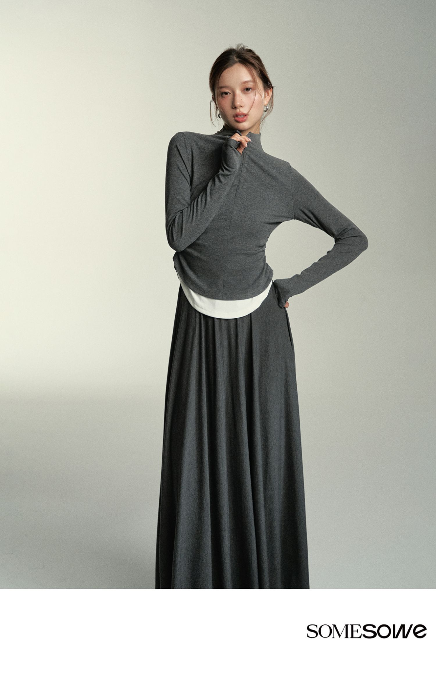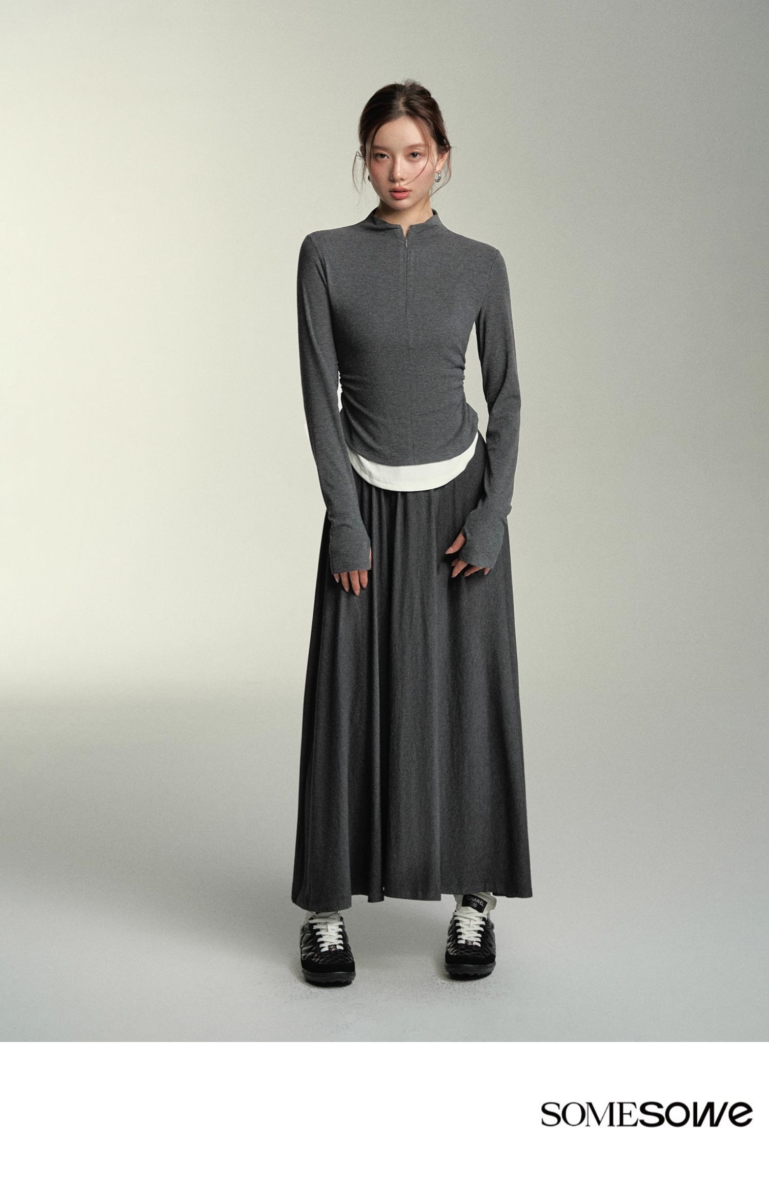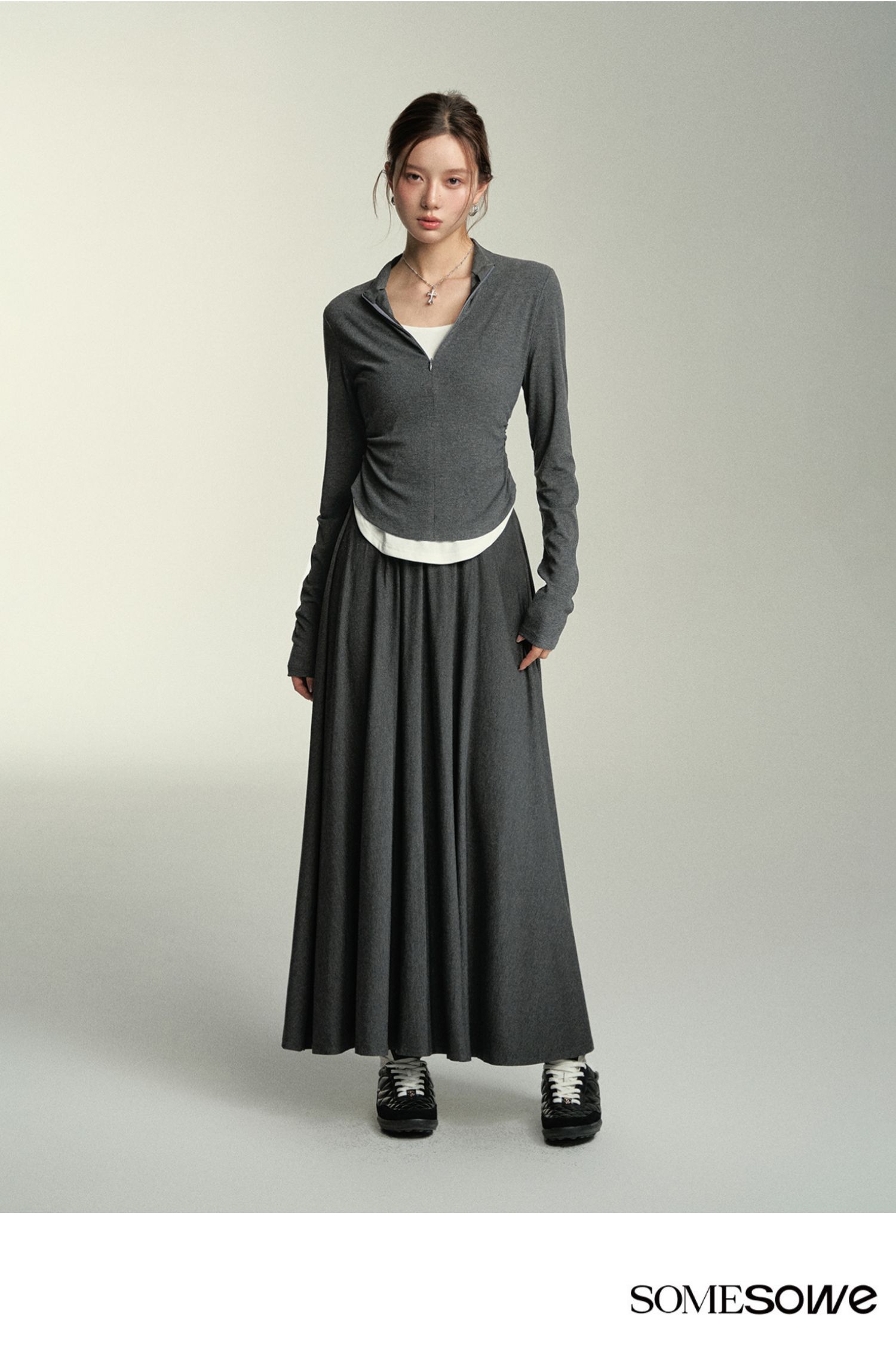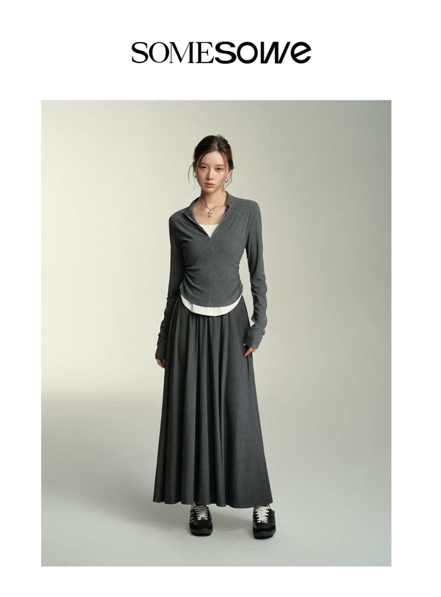 预售 | SOMESOWE 假两件弧形堆褶上衣-S2407050[福利品]