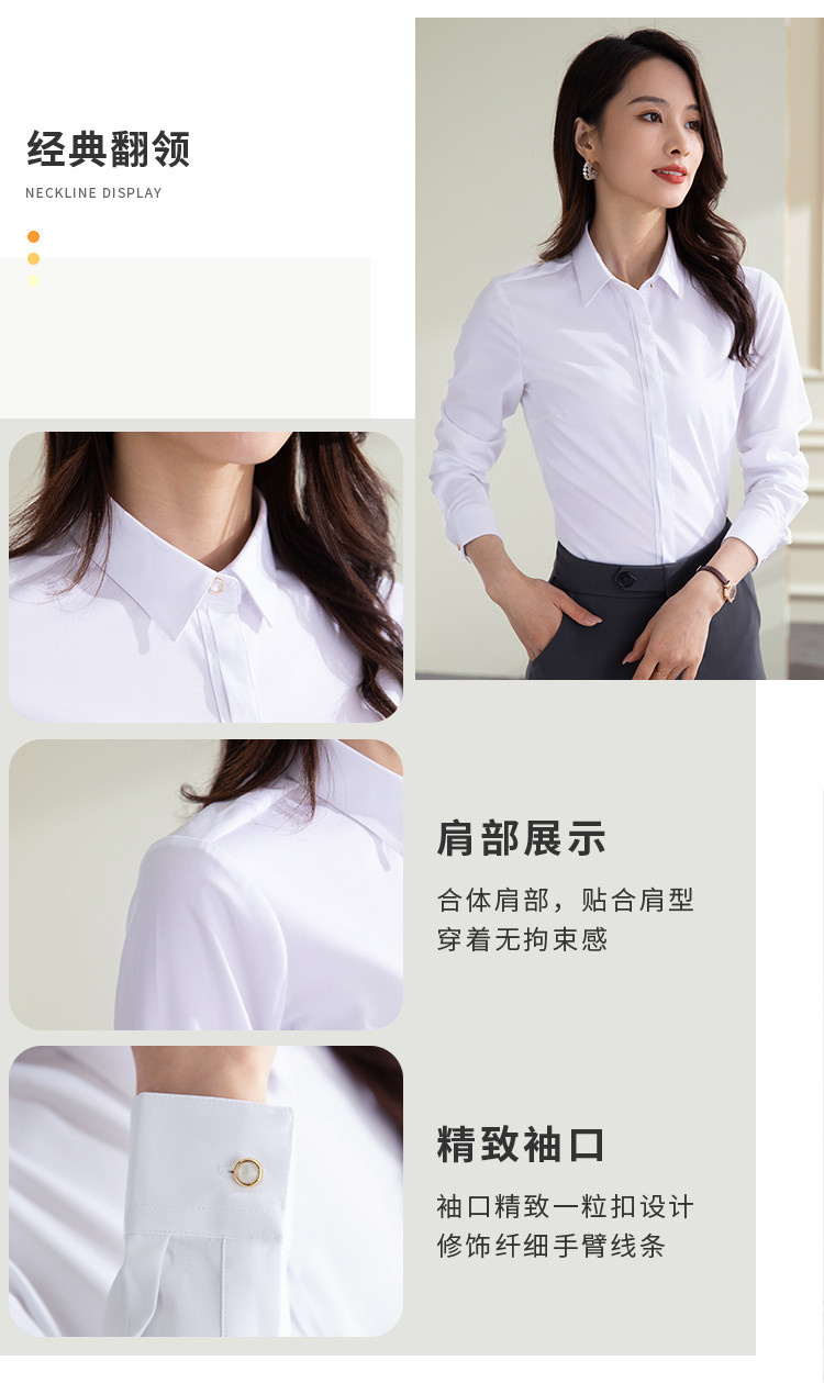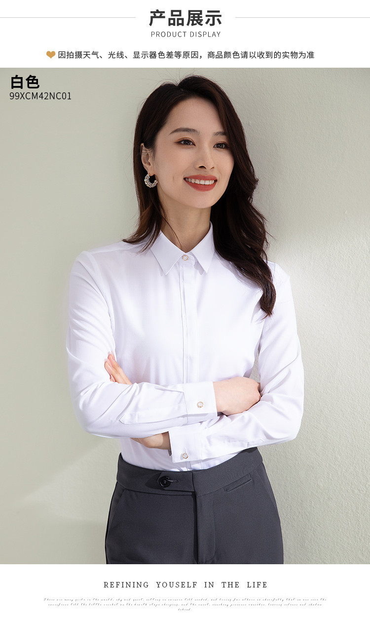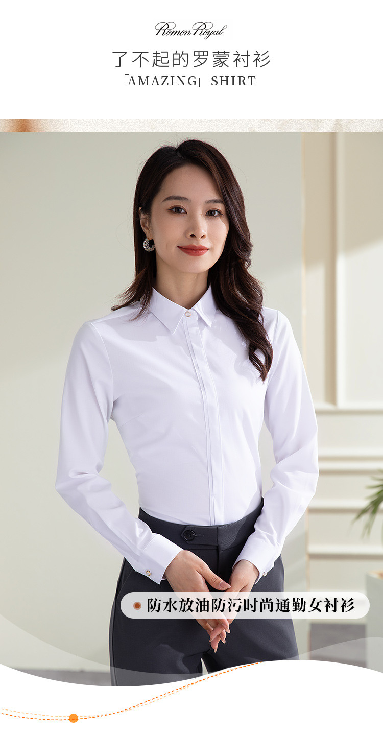 【防水防油防污】罗蒙女士衬衫纯色百搭商务通勤气质OL三防长袖衬衣