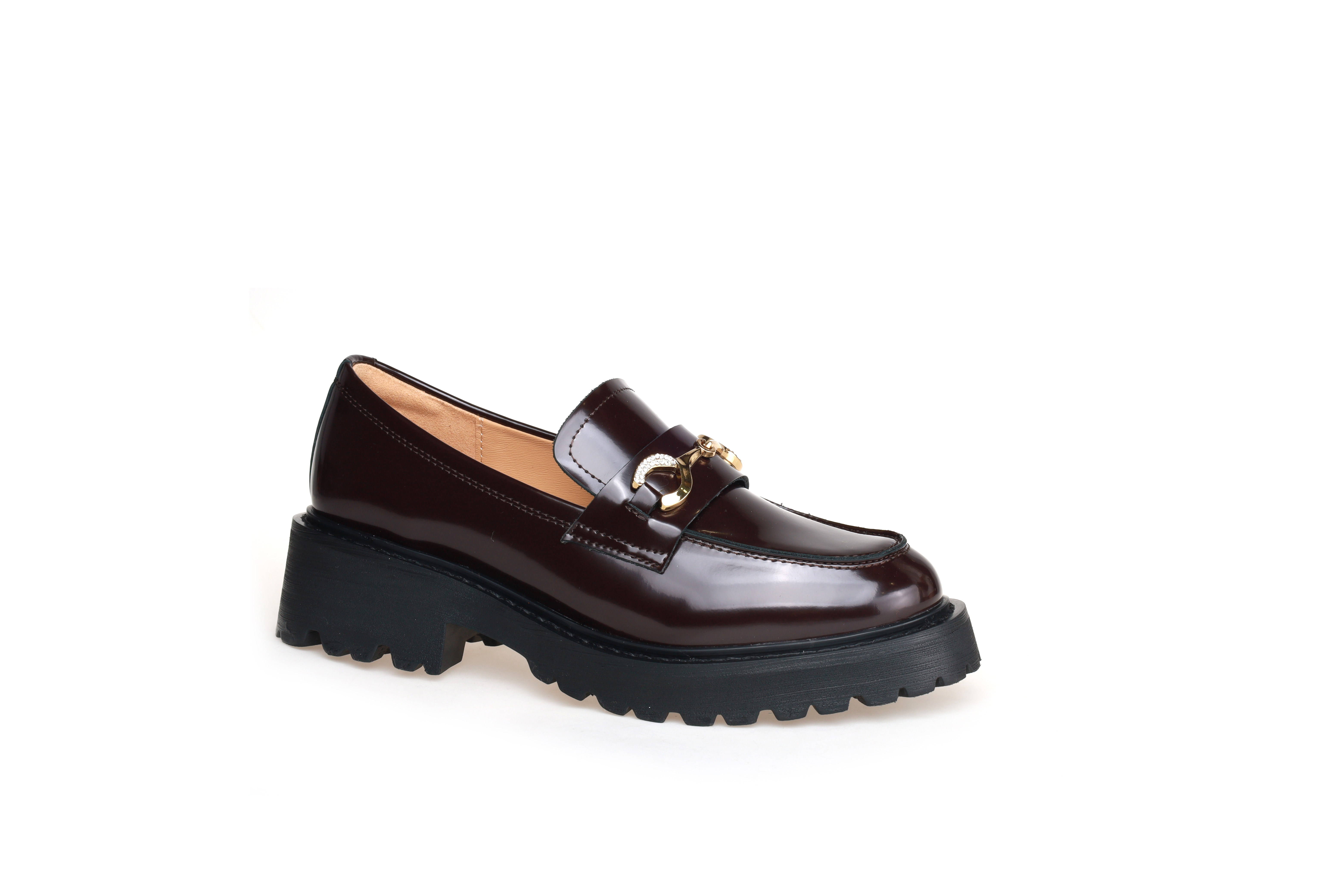 豪麟名鞋奥莱迪嘉女鞋乐福鞋牛皮革DJHJA42WS006酒红色 原价1660元