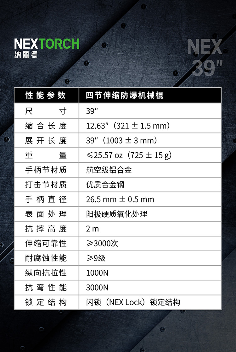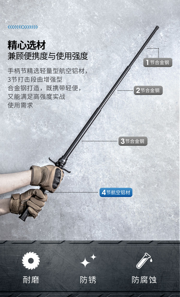 纳丽德(NEXTORCH)39英寸快客四节勤务棍伸缩机械棍车载防狼武器甩棍防卫棍