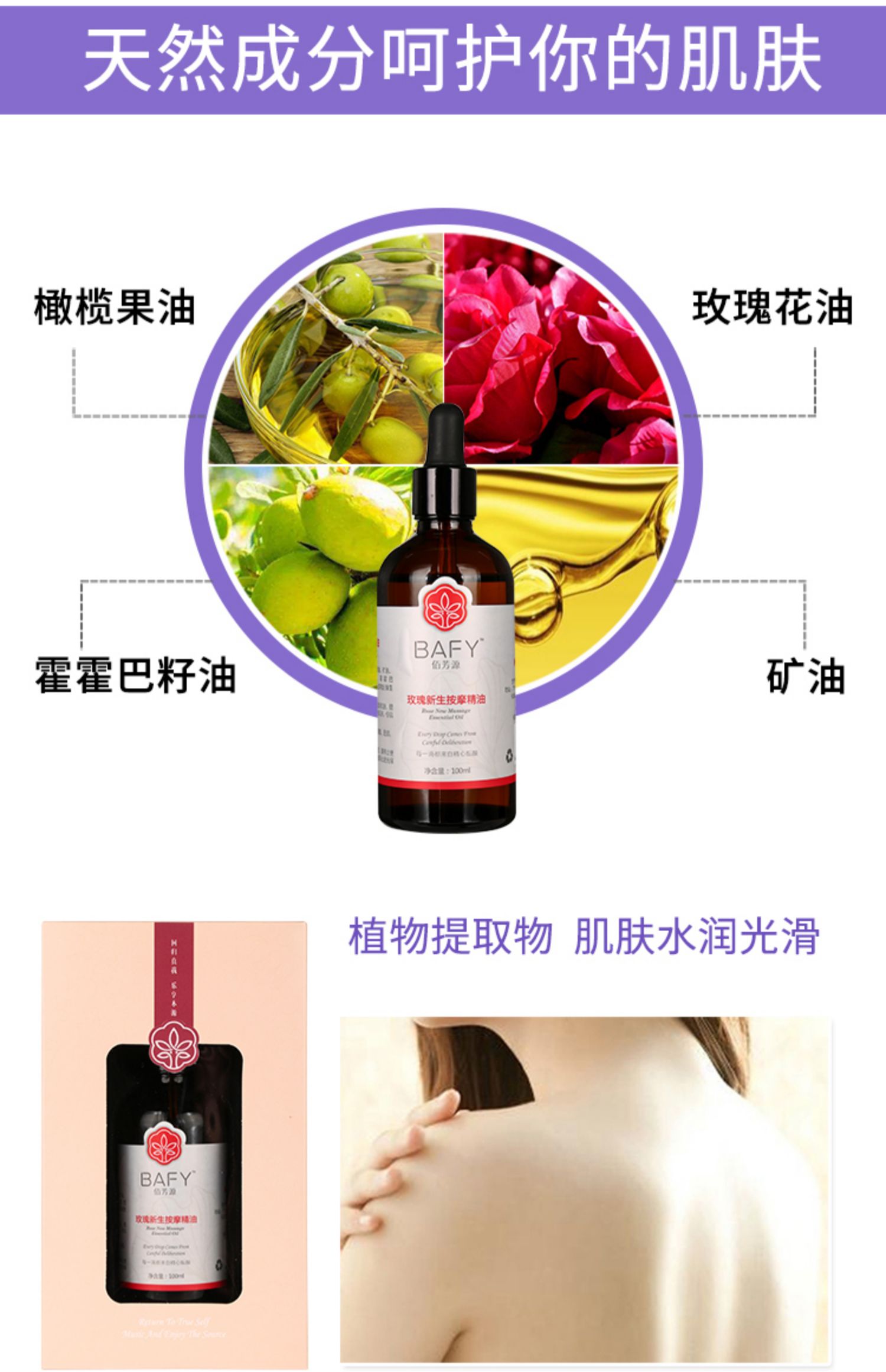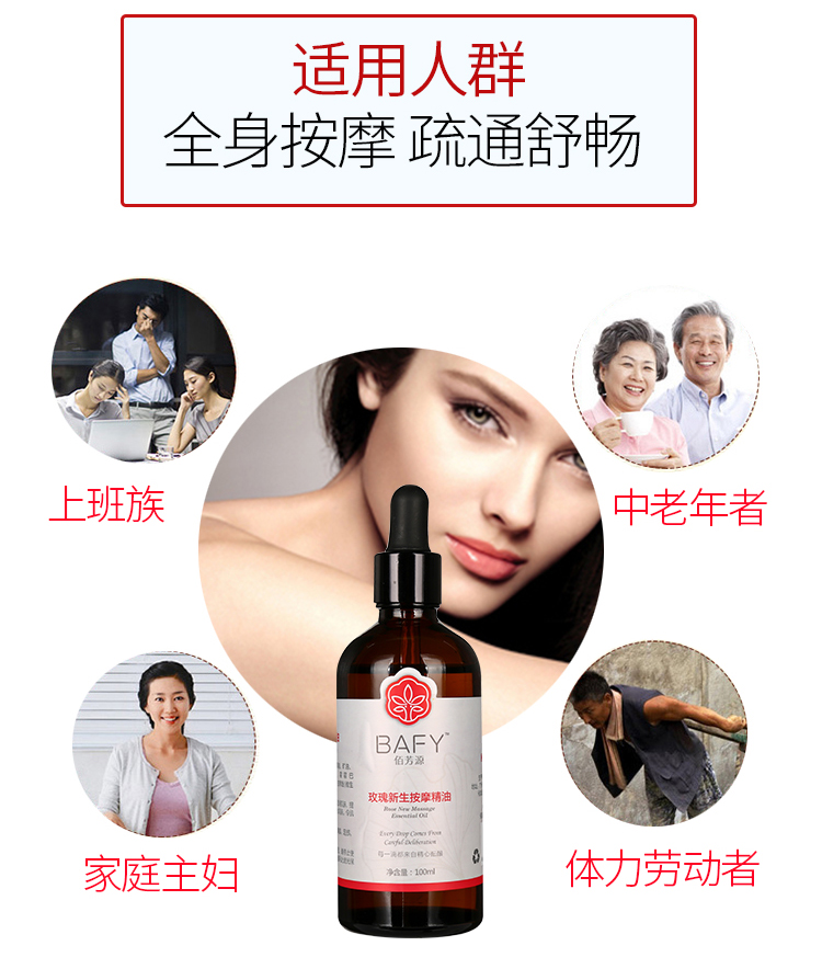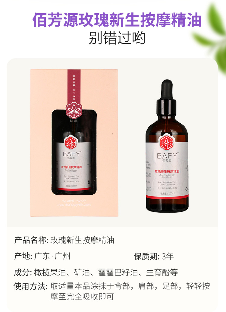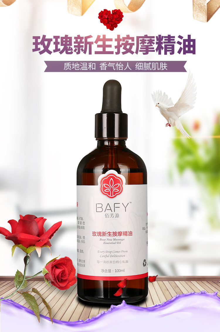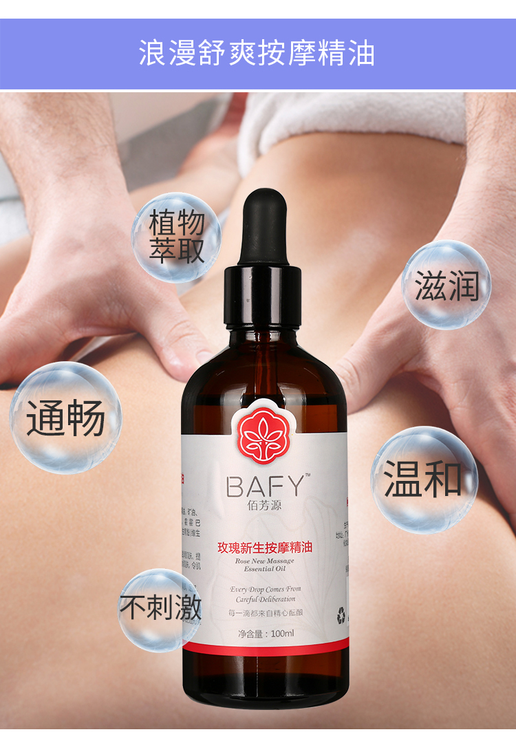 佰芳源玫瑰按摩精油身体推背推拿刮痧通经络美容院专用100ml