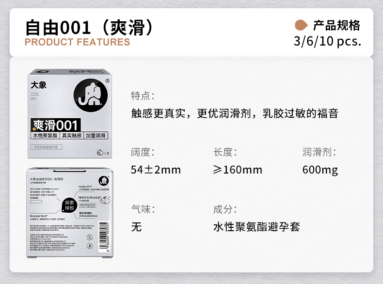 【双旦狂欢·钜惠来袭】 大象自由系列 爽滑超薄001 无佩戴感