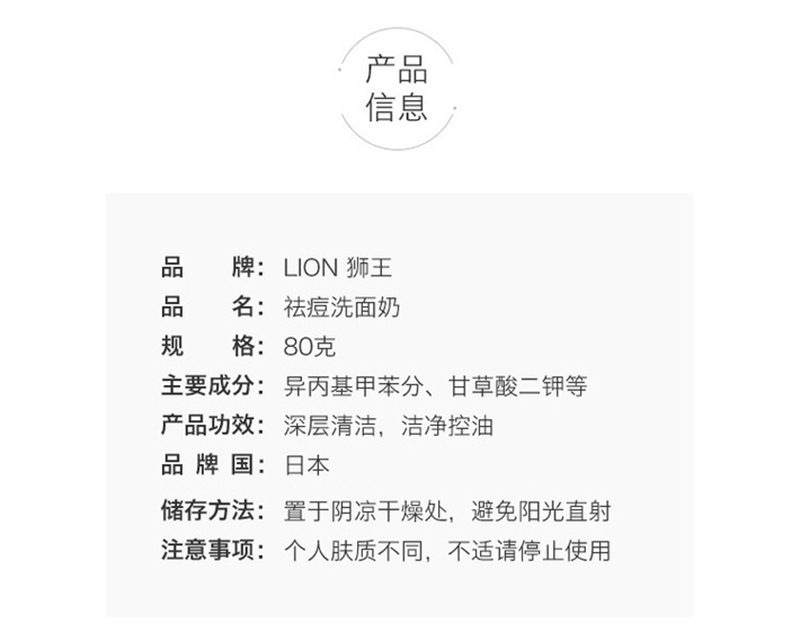日本狮王Lion 控油祛痘暗疮粉刺洗面奶80g