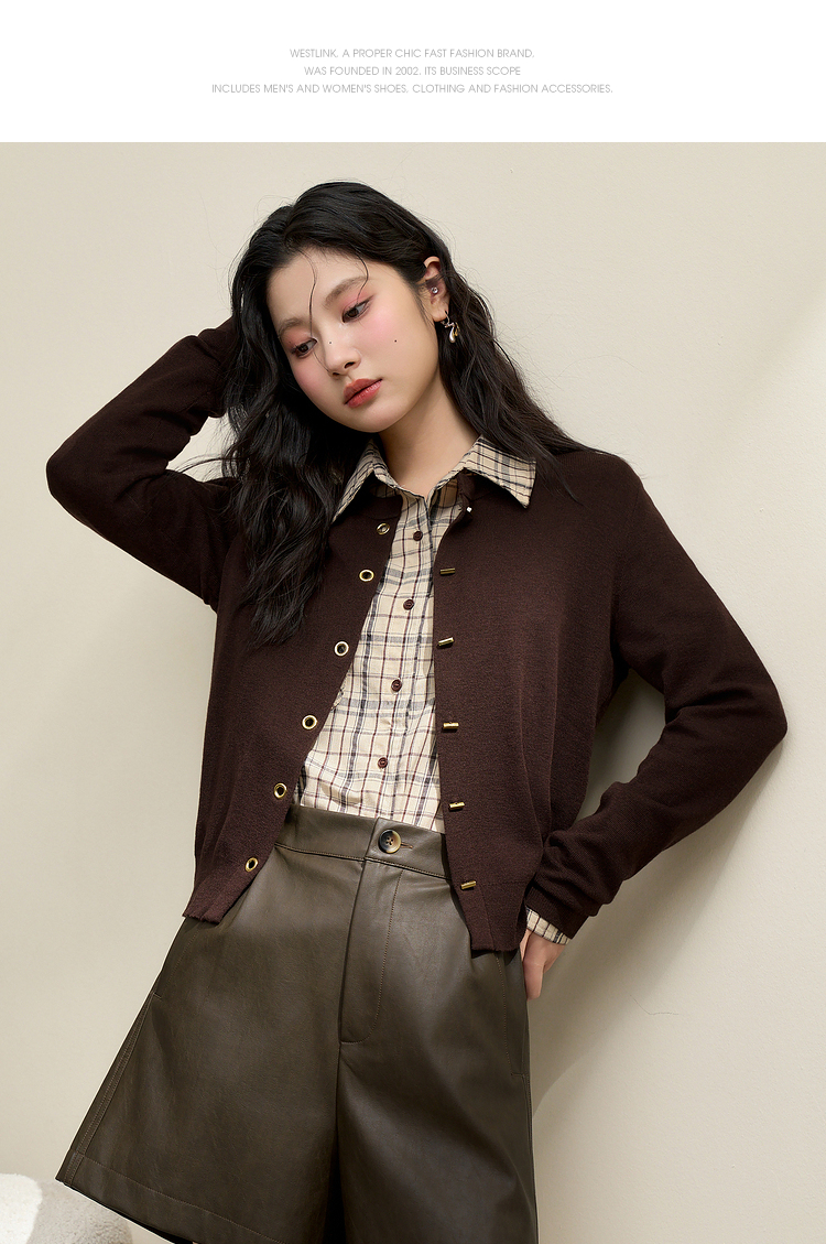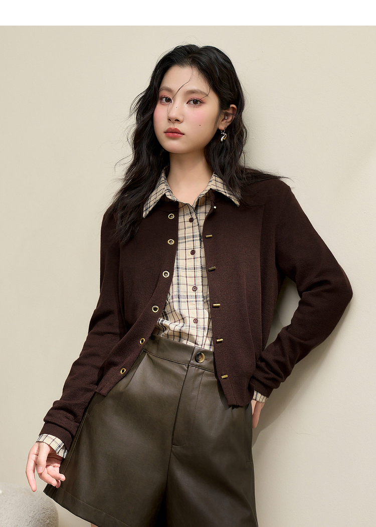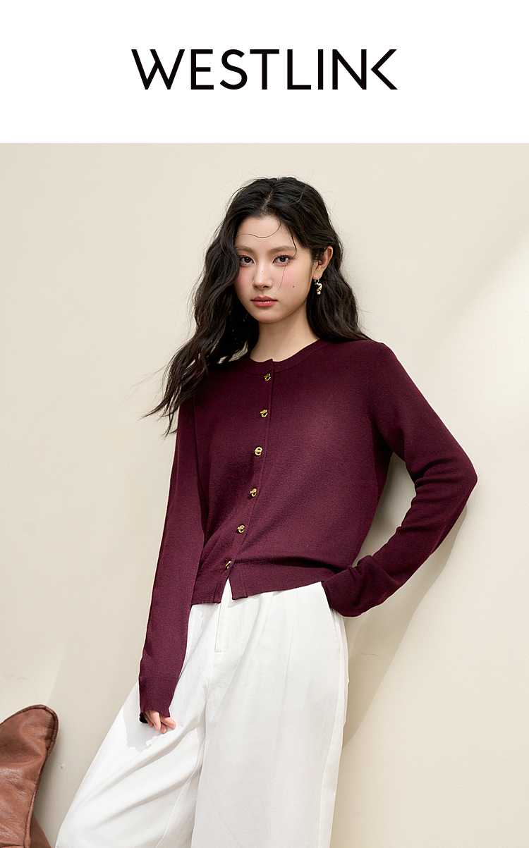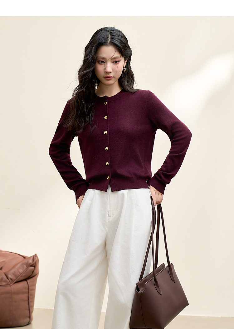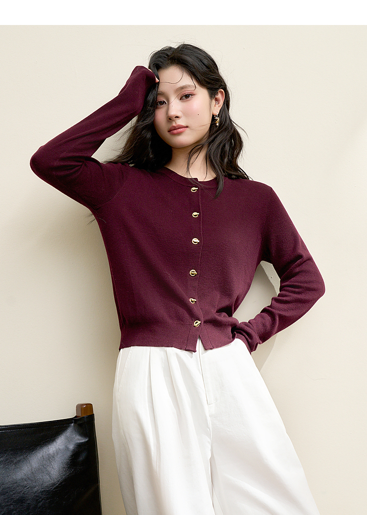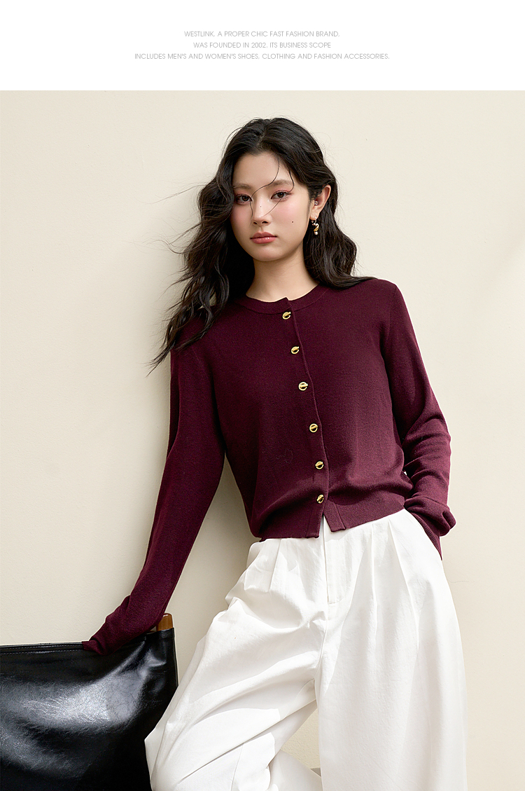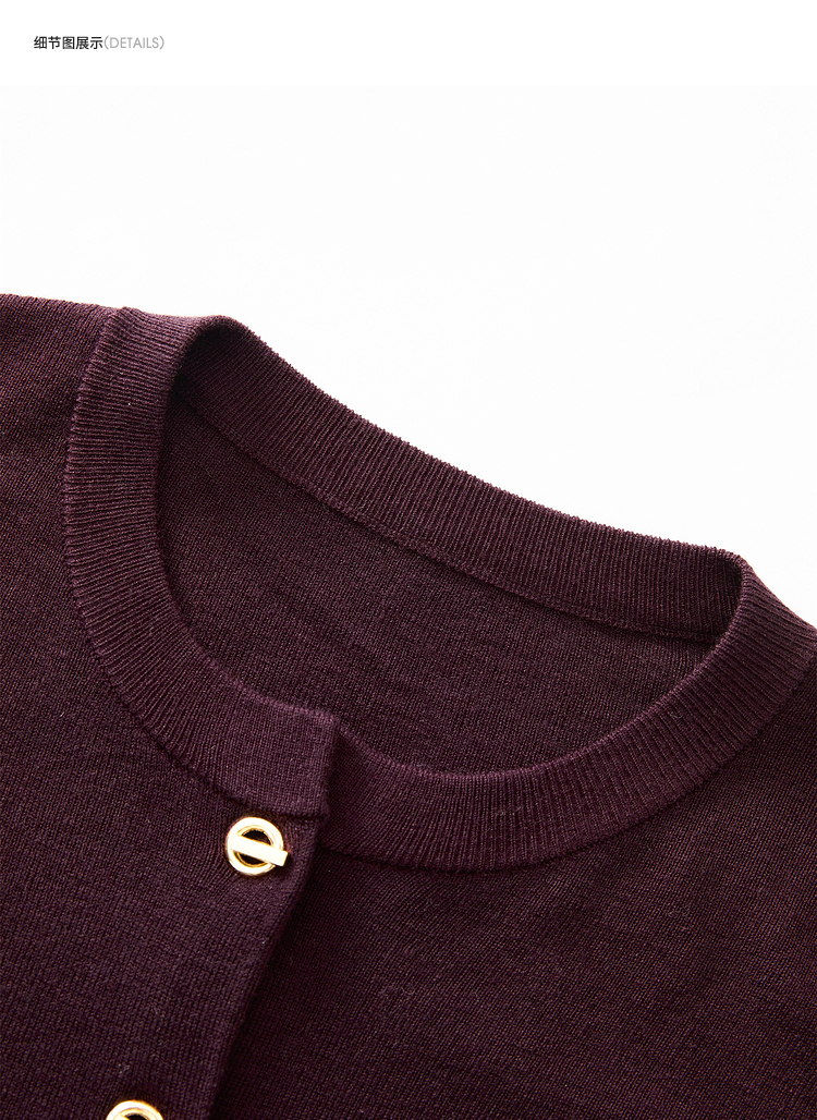 绵羊毛复古气质金属纽针织开衫外套女秋季轻薄保暖上衣V0043472