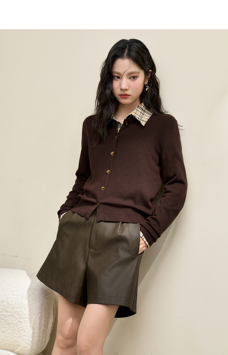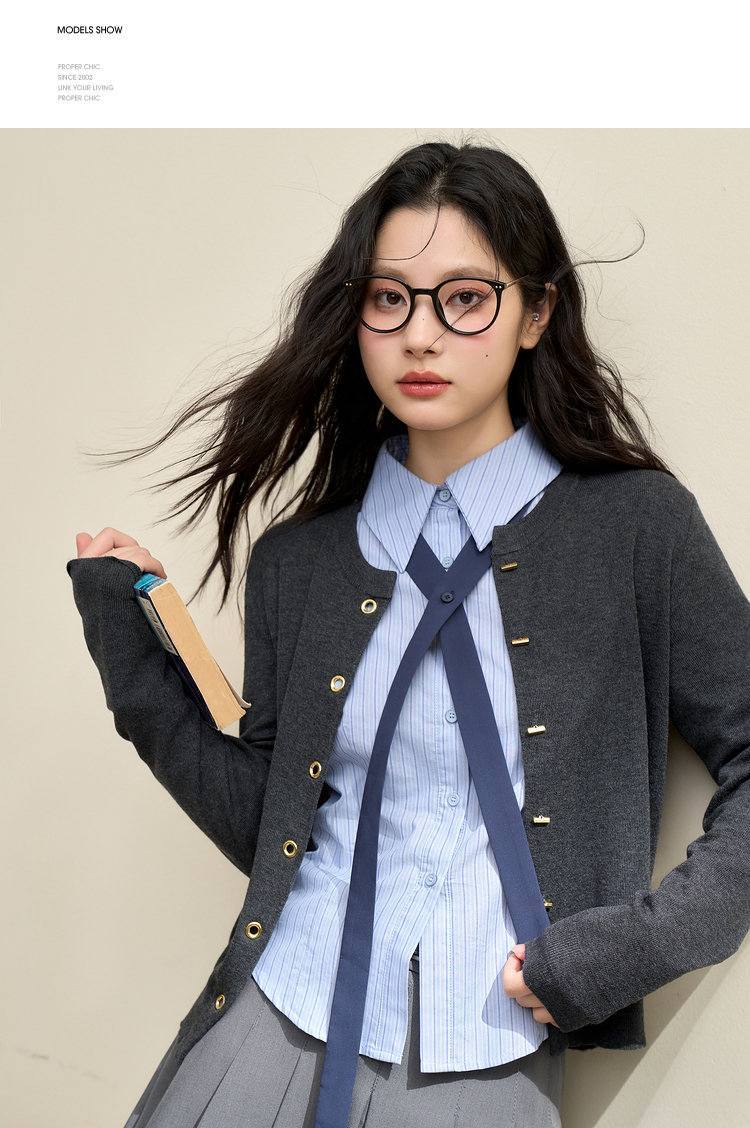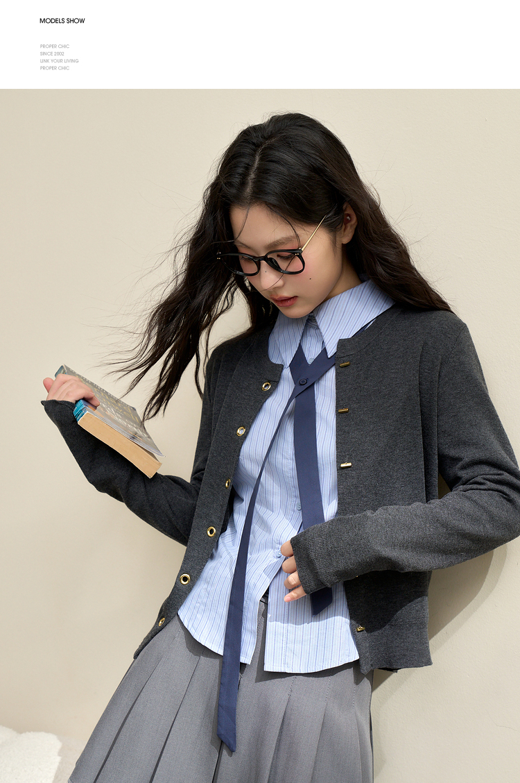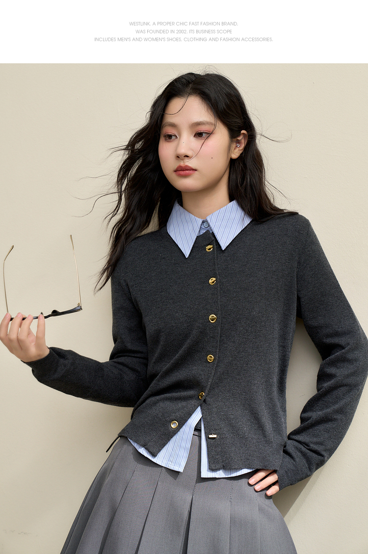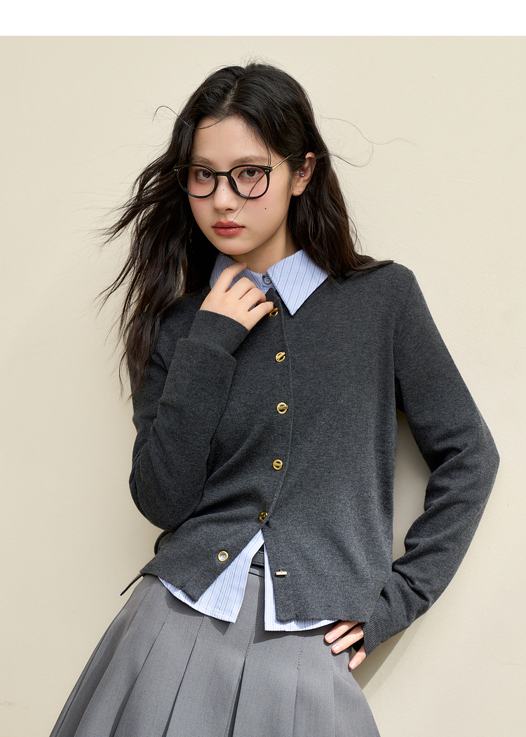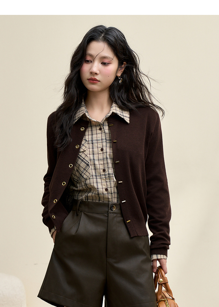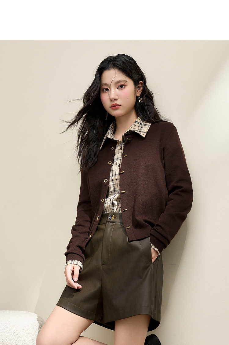 绵羊毛复古气质金属纽针织开衫外套女秋季轻薄保暖上衣V0043472