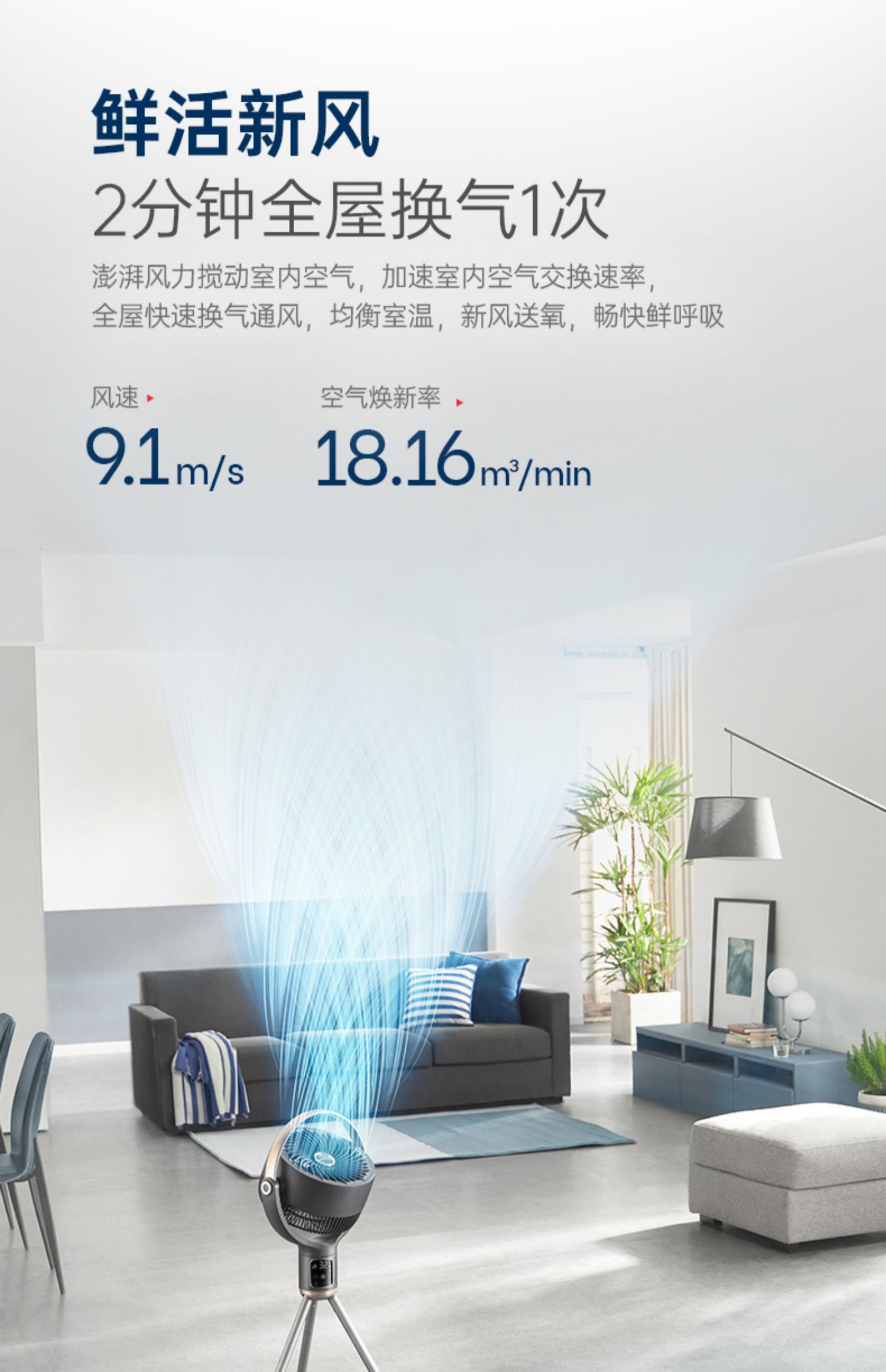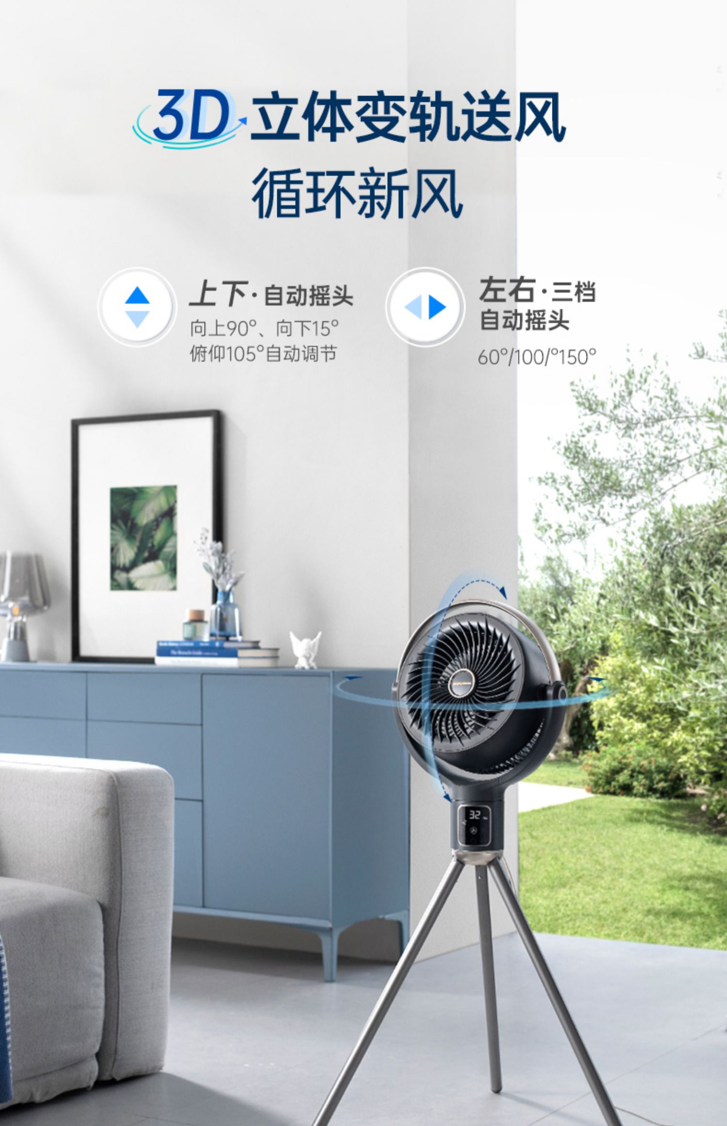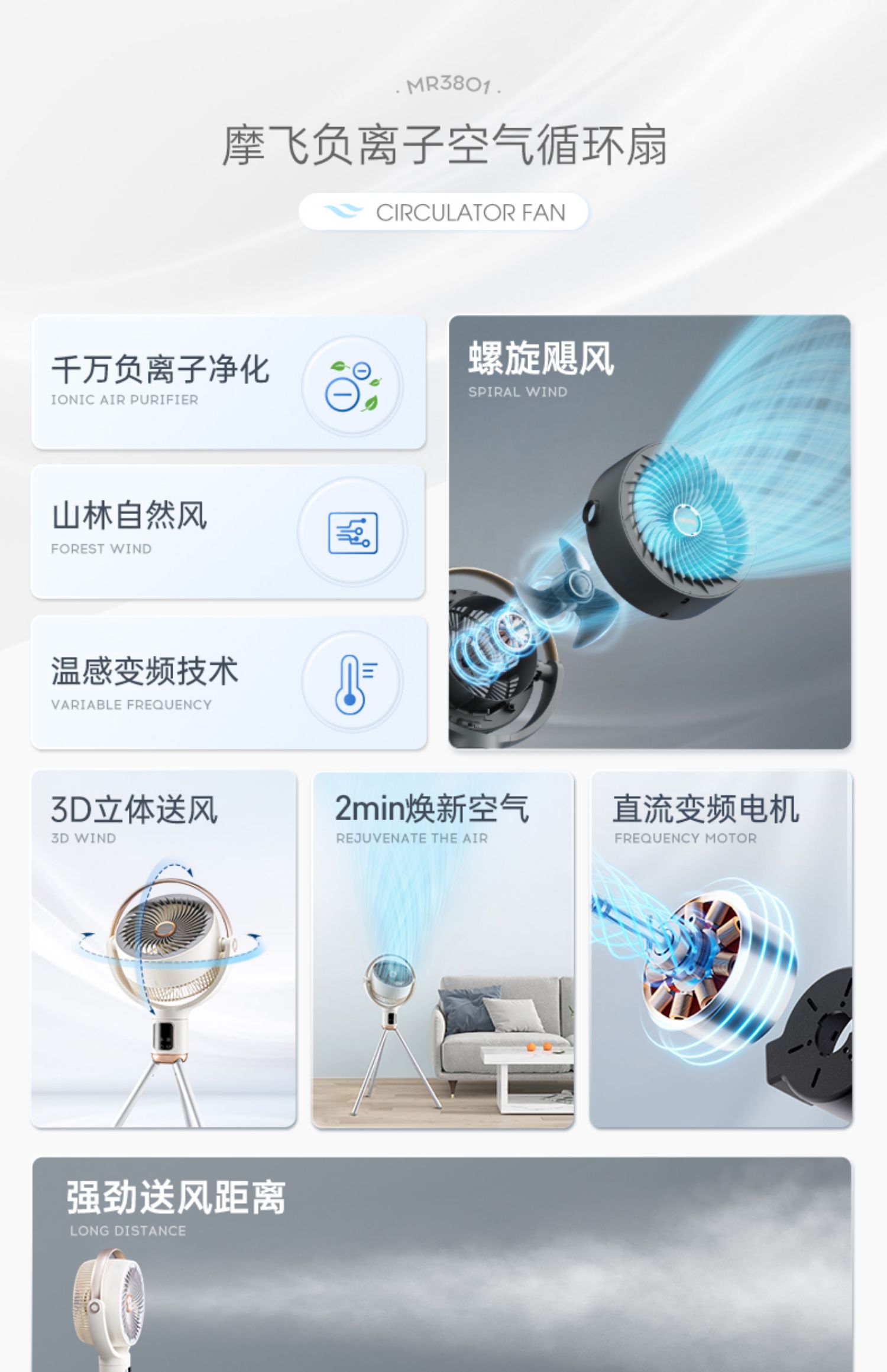 【摩飞负离子循环扇】摩飞负离子空气循环扇家用节能摇头立式大风力静音落地扇电风扇