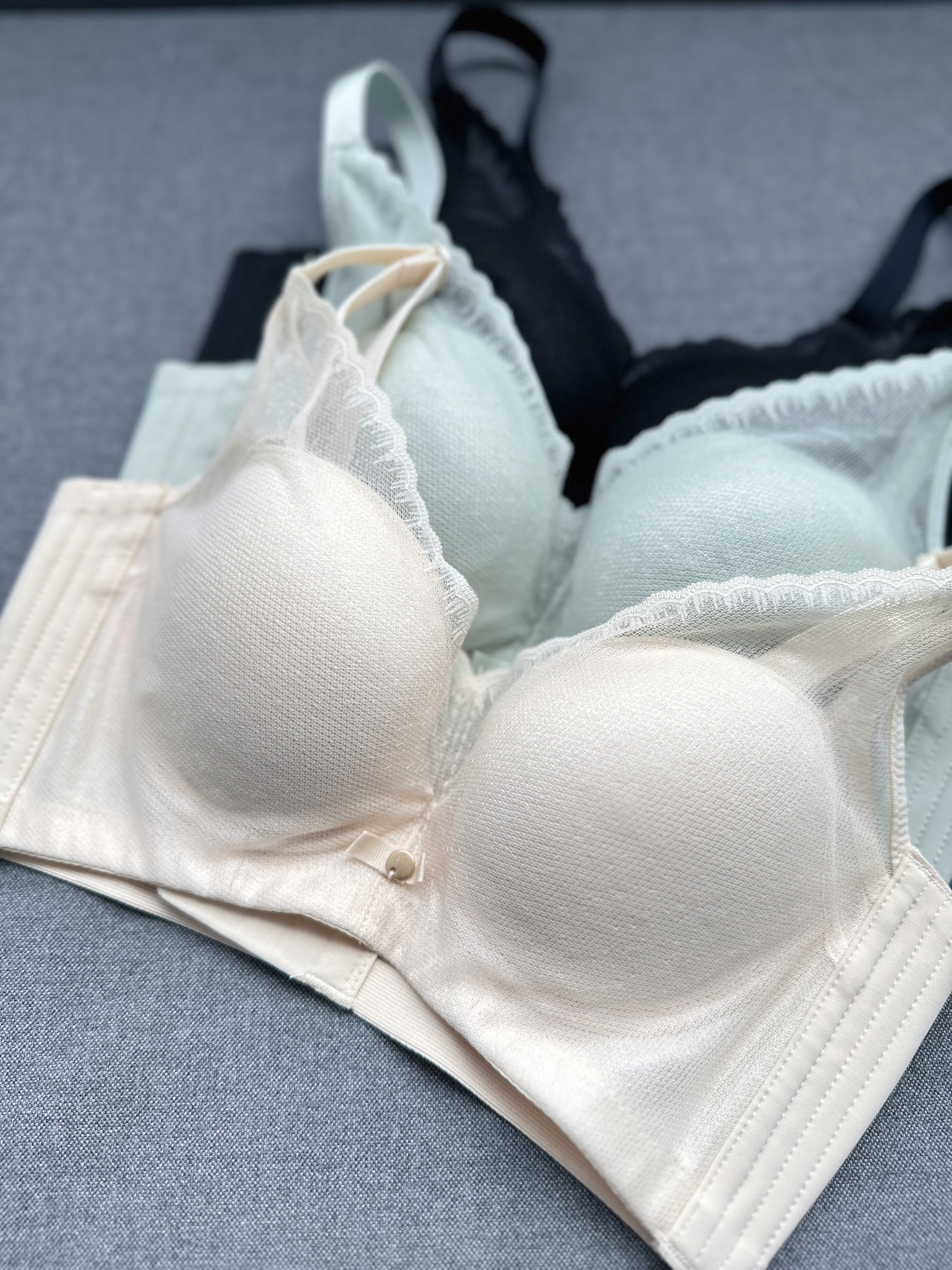 最让我惊喜的是它的无钢圈设计,用细细的车缝线代替钢圈,别以为没钢圈就没承托力,其实车缝线把承托做得特别好,我上班坐八小时,周末逛街走一下午,胸口都没那种勒得慌的负担感,抬手、弯腰的时候,胸部也稳稳的不跑杯。