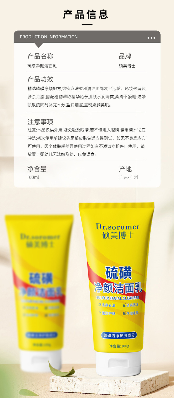 硫磺净颜洁面乳清爽洁净深层清洁毛孔控油洁面乳100ml