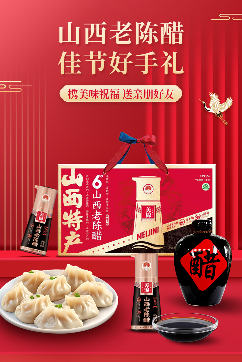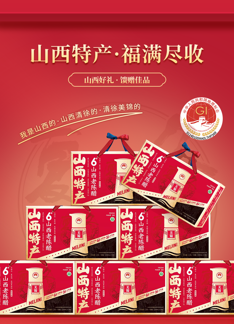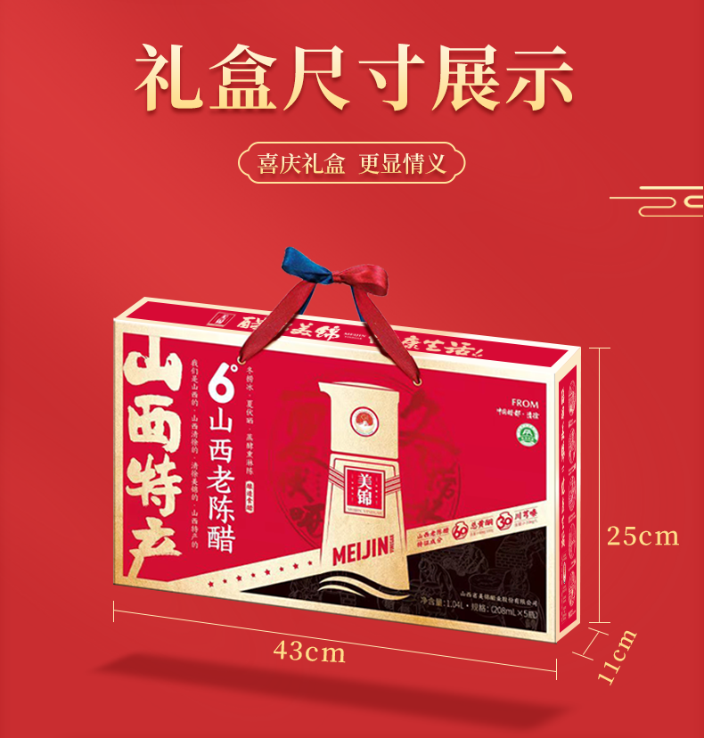 美锦丨山西老陈醋礼盒 6°山西老陈醋 1.04L/盒(208ml*5瓶)