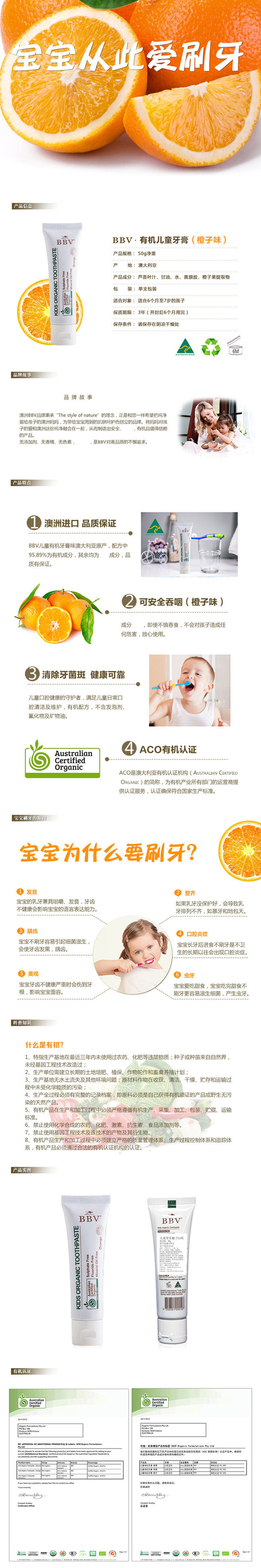 BBV 倍碧唯澳洲进口有机婴幼儿宝宝儿童无氟可吞咽防蛀牙膏