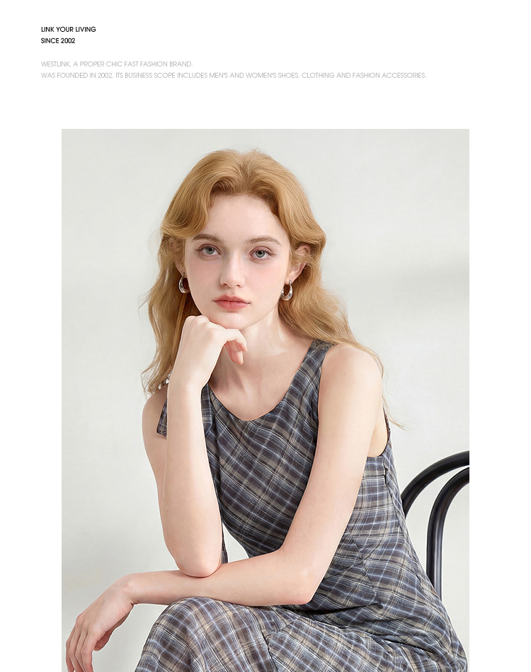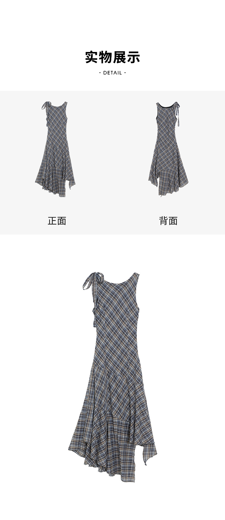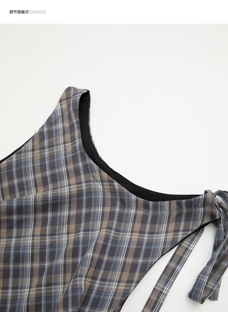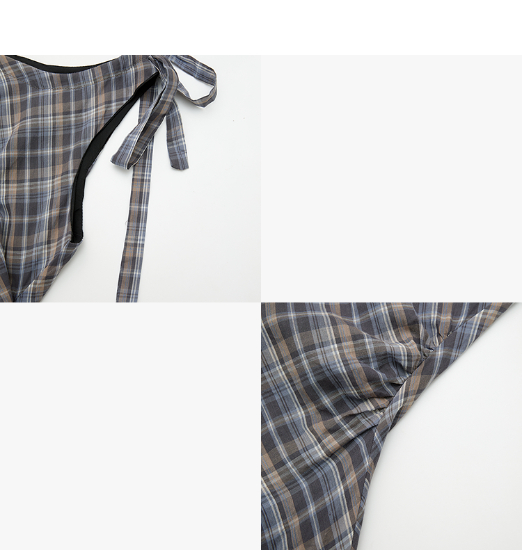 西遇2026夏新款复古挂脖格纹连衣裙女收腰系带不规则下摆气质长裙E0060268